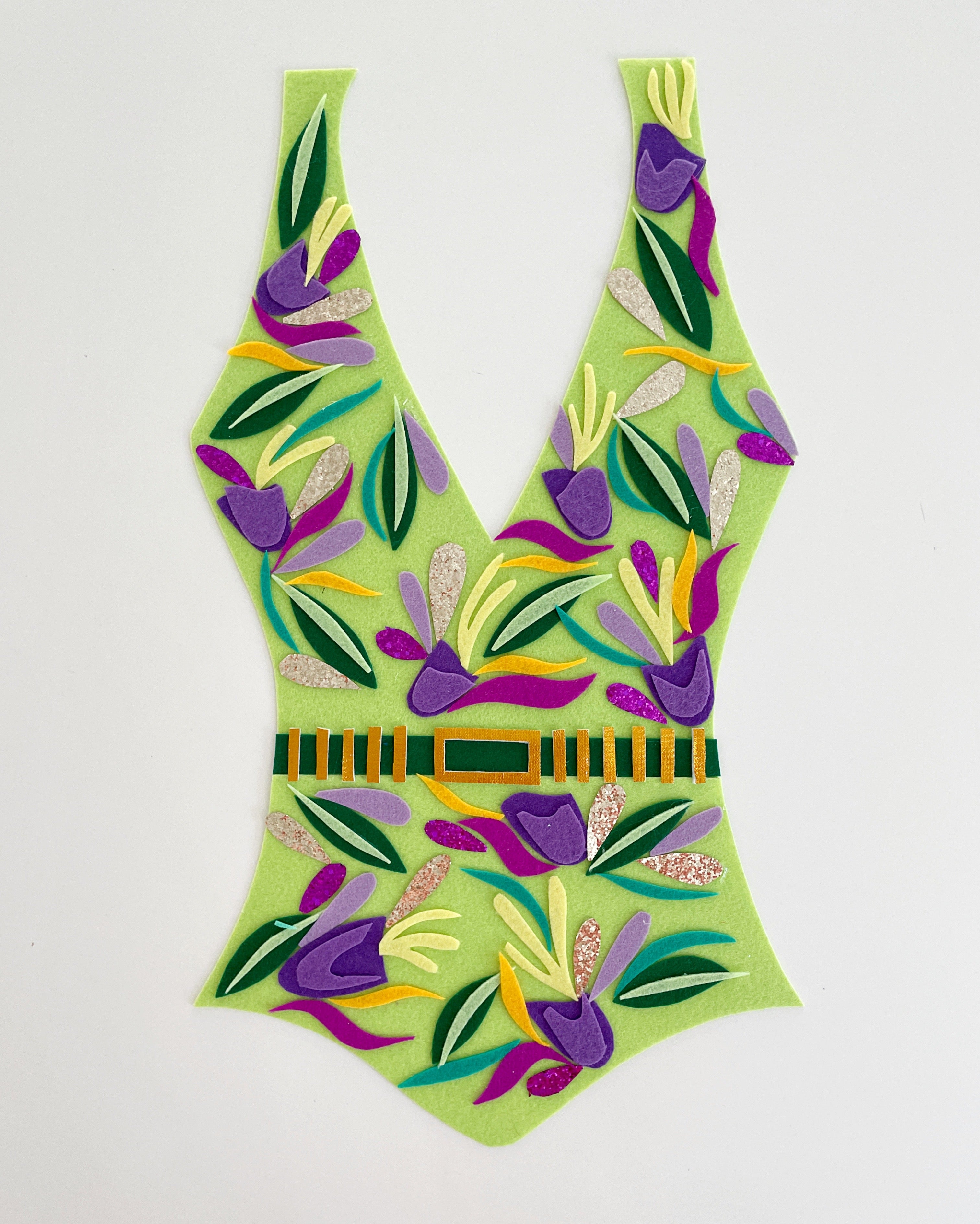 Sam Sidney is originally from New York, and moved to Charleston in 2007. She studied Studio Art at Skidmore College in Saratoga Springs, and earned a Masters in Art Education from NYU. For many years she was an illustrator, but it wasn’t until the quarantine that she started working with felt. She promised herself she would do an art project with her kids each day. One day, she pulled out a small box of felt and made some collages. She made a self portrait out of felt, posted it online, and the rest is history! She free hand cuts felt pieces to create protists of celebrities, pets, food and drinks. When she is not making things out of felt, you can find her at the beach with her 4 kids and 2 dogs.