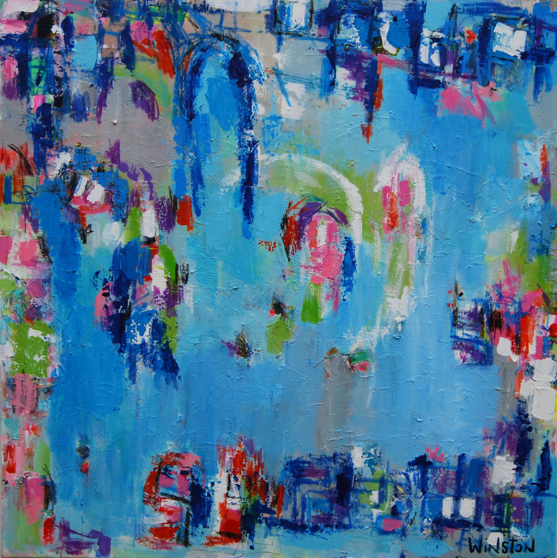 Winston Wiant is originally from Amelia Island, Florida, and full of southern charm. She brings her whimsical and witty delight to each and every painting. Having painted since childhood, she received a Bachelor of Arts degree in Studio Art at Brenau University and has been pursuing her love of art ever since. Her paintings are full of texture, using the palette knife and free brushstrokes to layer the paint, creating one energetic piece after another. She lives in Athens, GA, with her husband and two daughters and paints in her home studio. “Art to me is a form of self-expression. The way I feel that day reflects in my work. My love of bold color and texture is both distinctive and captivating.”