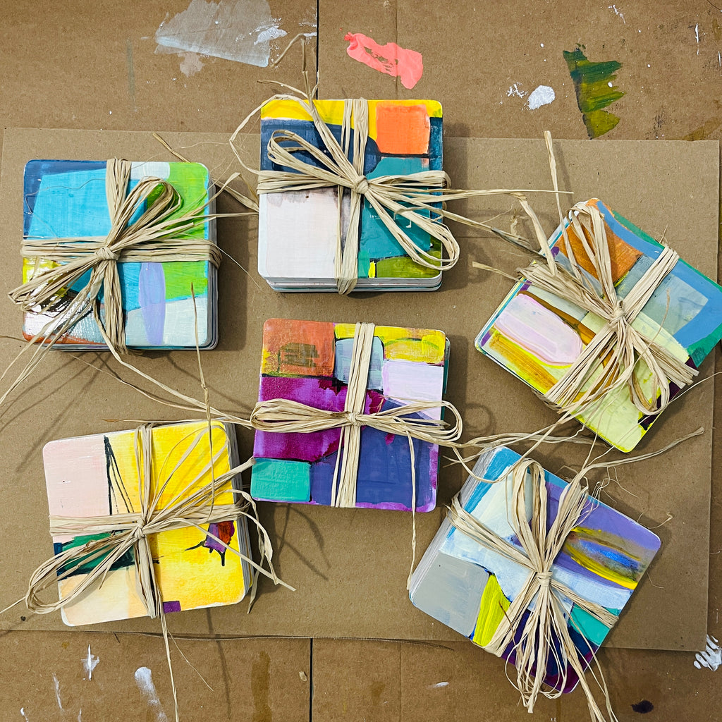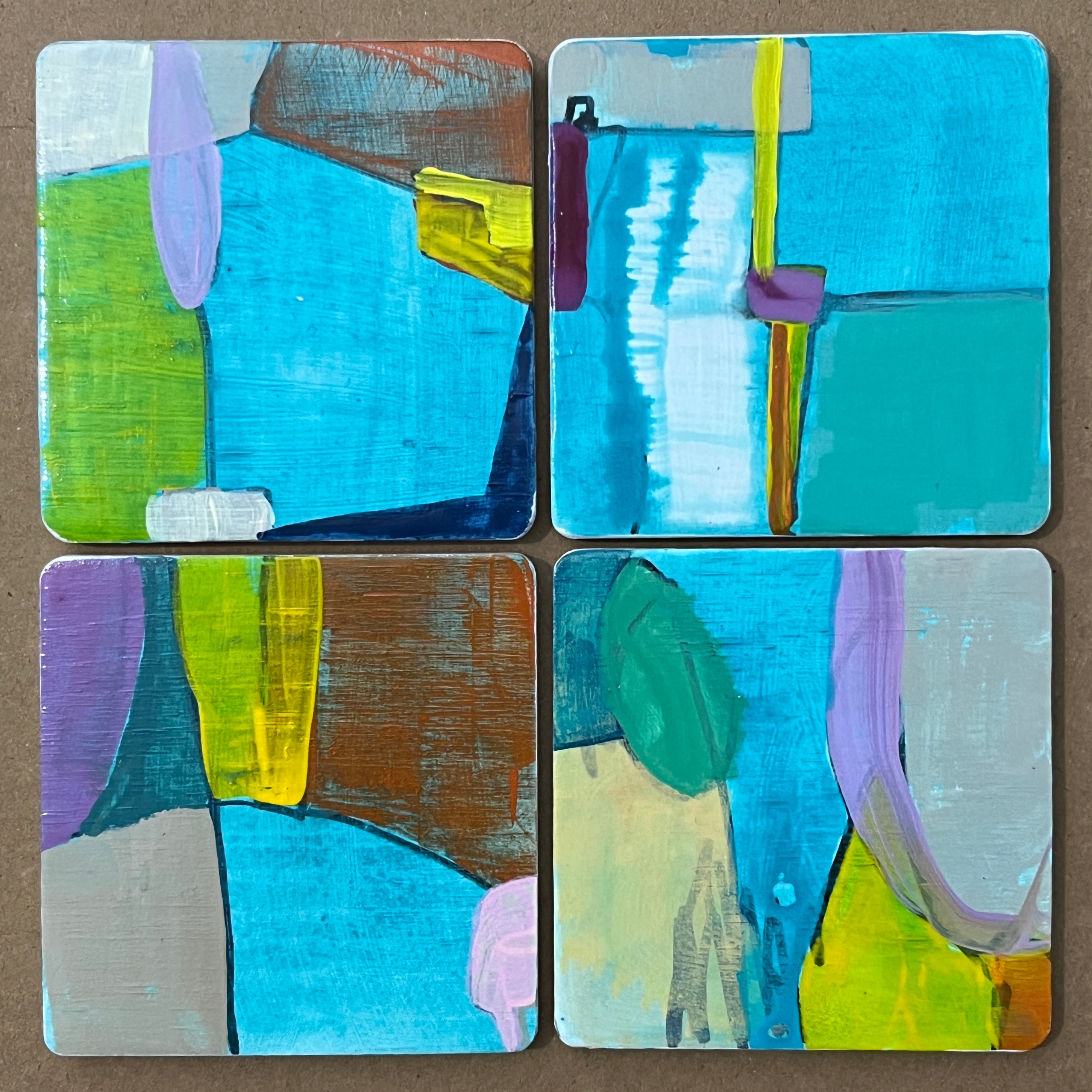I find ultimate freedom in abstract expressionism and as such, I’m in search of the best way to convey who I am at the moment of creating. It is not to say it is a free-for-all; there is still structure within. I implement the same principles that realist painters employ with the absence of representation: composition, hierarchy, variety, juxtaposition are vital to a successful painting. But I do not limit myself to one medium or the other. I work in oil, acrylics and gouache and depending on what I’m exploring at the time I will choose one or more to express it. I also explore through a combination of paint and collage. It is through all of these various methods and mediums that I am able to share my fullest expression of self and my authenticity. My paintings ultimately are self portraits that are created from both past experiences and also future hopes and dreams. It is my goal to invoke a feeling for the viewer. When it does I have succeede