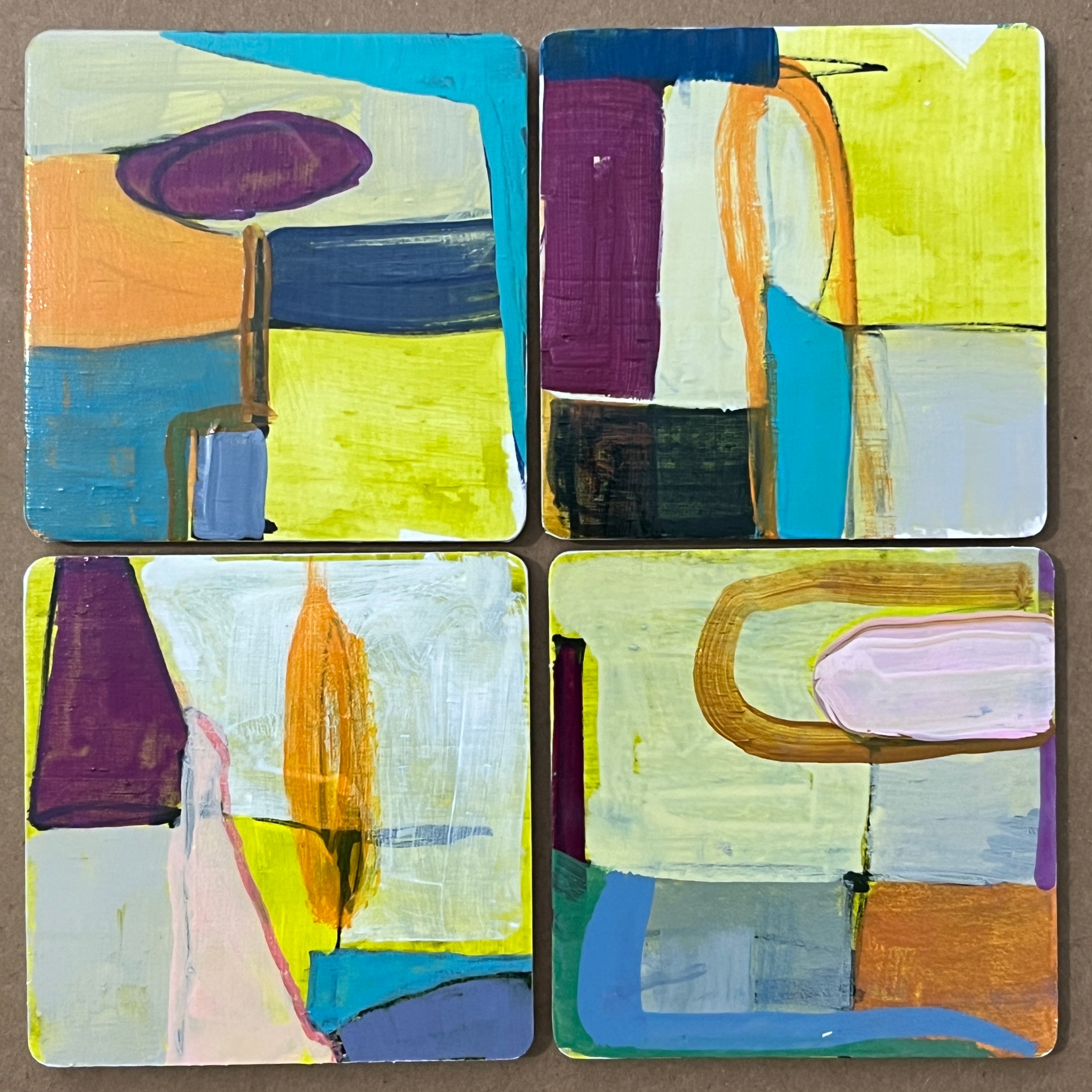I find ultimate freedom in abstract expressionism and as such, I’m in search of the best way to convey who I am at the moment of creating. It is not to say it is a free-for-all; there is still structure within. I implement the same principles that realist painters employ with the absence of representation: composition, hierarchy, variety, juxtaposition are vital to a successful painting. But I do not limit myself to one medium or the other. I work in oil, acrylics and gouache and depending on what I’m exploring at the time I will choose one or more to express it. I also explore through a combination of paint and collage. It is through all of these various methods and mediums that I am able to share my fullest expression of self and my authenticity. My paintings ultimately are self portraits that are created from both past experiences and also future hopes and dreams. It is my goal to invoke a feeling for the viewer. When it does I have succeede