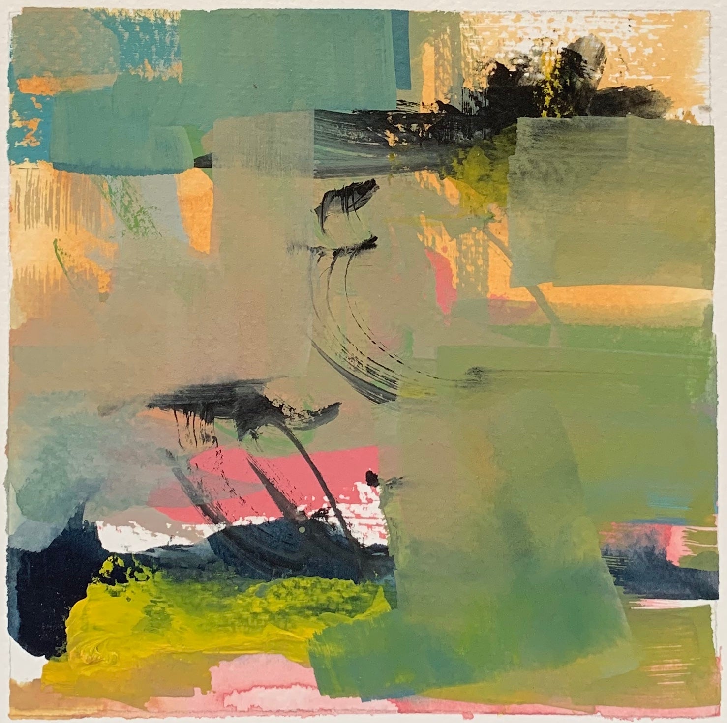 I find ultimate freedom in abstract expressionism and as such, I’m in search of the best way to convey who I am at the moment of creating. It is not to say it is a free-for-all; there is still structure within. I implement the same principles that realist painters employ with the absence of representation: composition, hierarchy, variety, juxtaposition are vital to a successful painting. But I do not limit myself to one medium or the other. I work in oil, acrylics and gouache and depending on what I’m exploring at the time I will choose one or more to express it. I also explore through a combination of paint and collage. It is through all of these various methods and mediums that I am able to share my fullest expression of self and my authenticity. My paintings ultimately are self portraits that are created from both past experiences and also future hopes and dreams. It is my goal to invoke a feeling for the viewer. When it does I have succeede