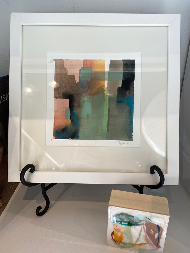 I find ultimate freedom in abstract expressionism and as such, I’m in search of the best way to convey who I am at the moment of creating. It is not to say it is a free-for-all; there is still structure within. I implement the same principles that realist painters employ with the absence of representation: composition, hierarchy, variety, juxtaposition are vital to a successful painting. But I do not limit myself to one medium or the other. I work in oil, acrylics and gouache and depending on what I’m exploring at the time I will choose one or more to express it. I also explore through a combination of paint and collage. It is through all of these various methods and mediums that I am able to share my fullest expression of self and my authenticity. My paintings ultimately are self portraits that are created from both past experiences and also future hopes and dreams. It is my goal to invoke a feeling for the viewer. When it does I have succeede