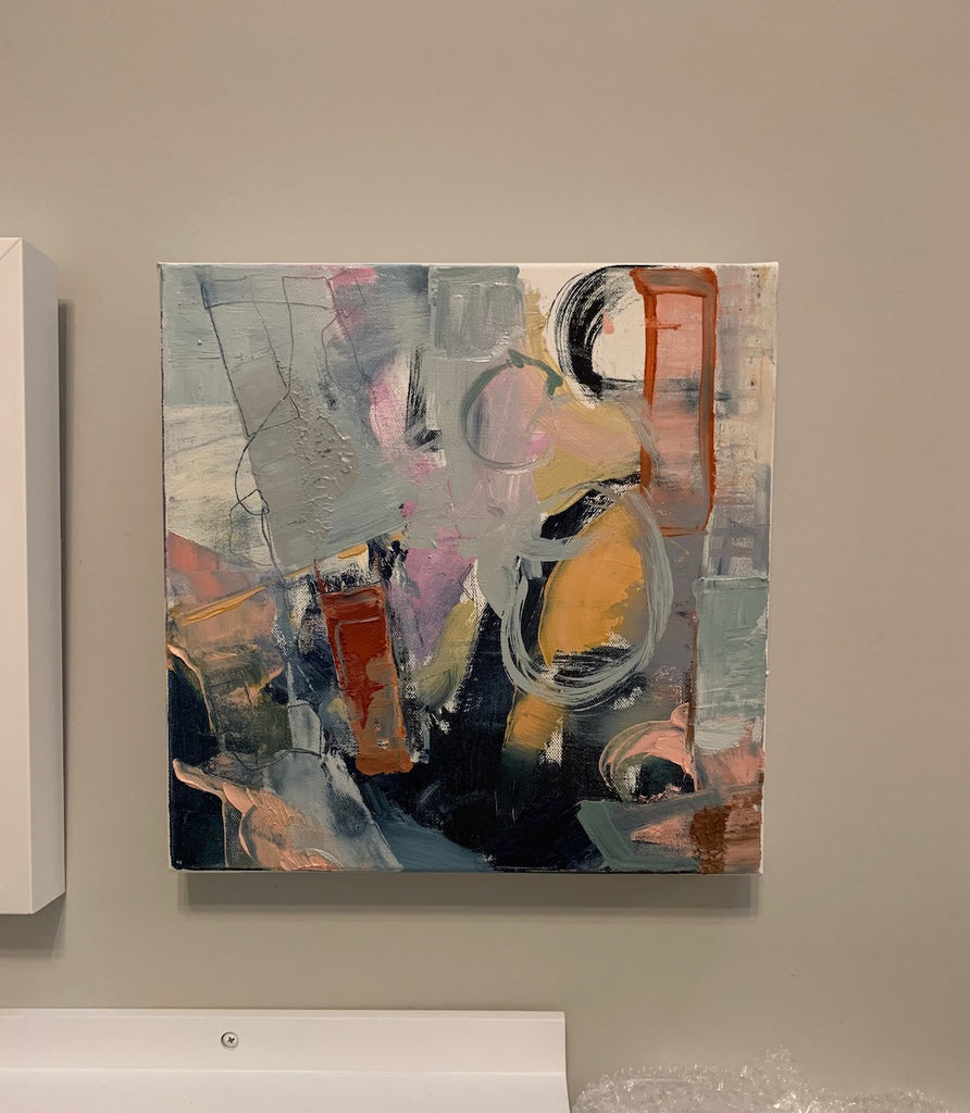I find ultimate freedom in abstract expressionism and as such, I’m in search of the best way to convey who I am at the moment of creating. It is not to say it is a free-for-all; there is still structure within. I implement the same principles that realist painters employ with the absence of representation: composition, hierarchy, variety, juxtaposition are vital to a successful painting. But I do not limit myself to one medium or the other. I work in oil, acrylics and gouache and depending on what I’m exploring at the time I will choose one or more to express it. I also explore through a combination of paint and collage. It is through all of these various methods and mediums that I am able to share my fullest expression of self and my authenticity. My paintings ultimately are self portraits that are created from both past experiences and also future hopes and dreams. It is my goal to invoke a feeling for the viewer. When it does I have succeede