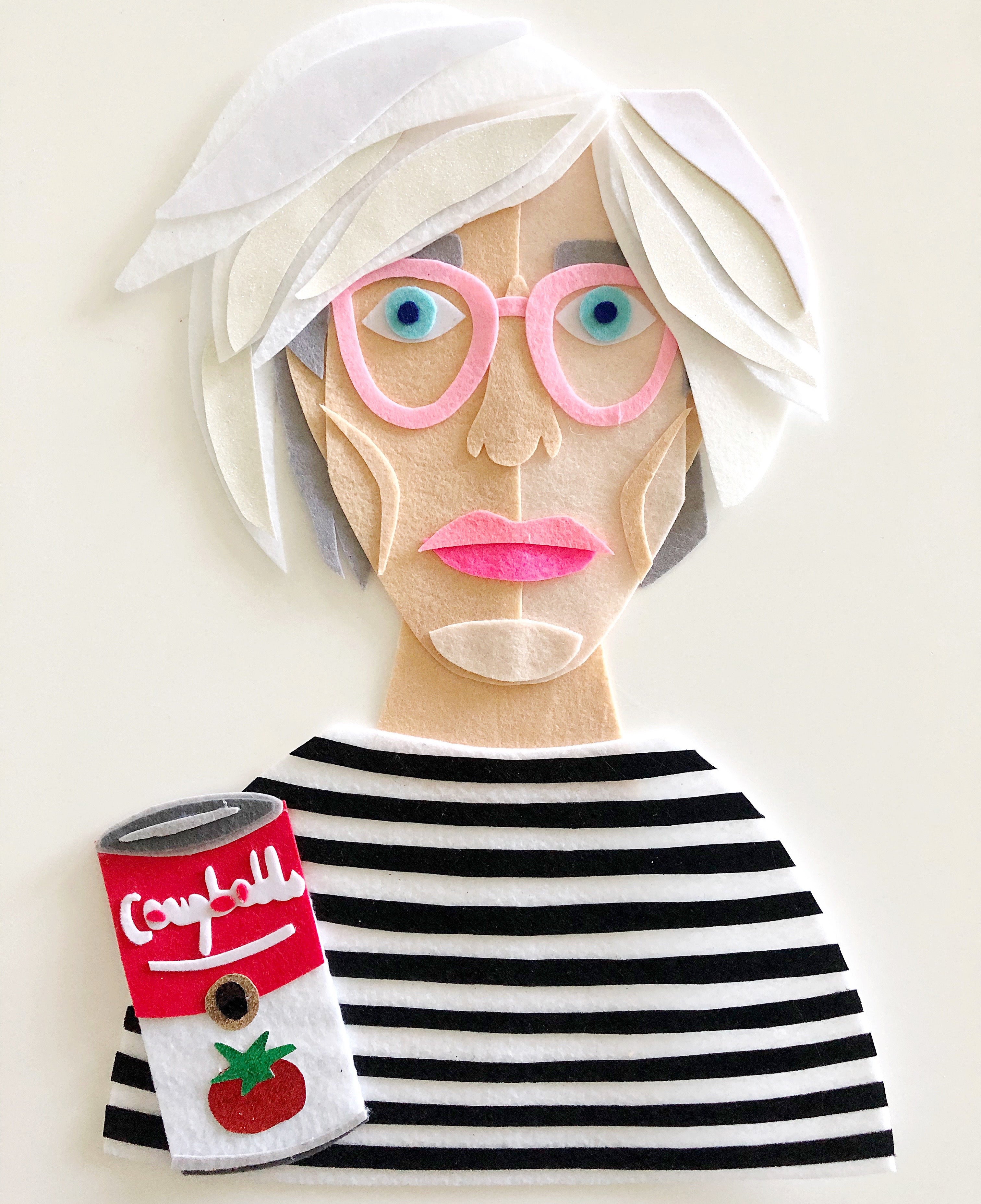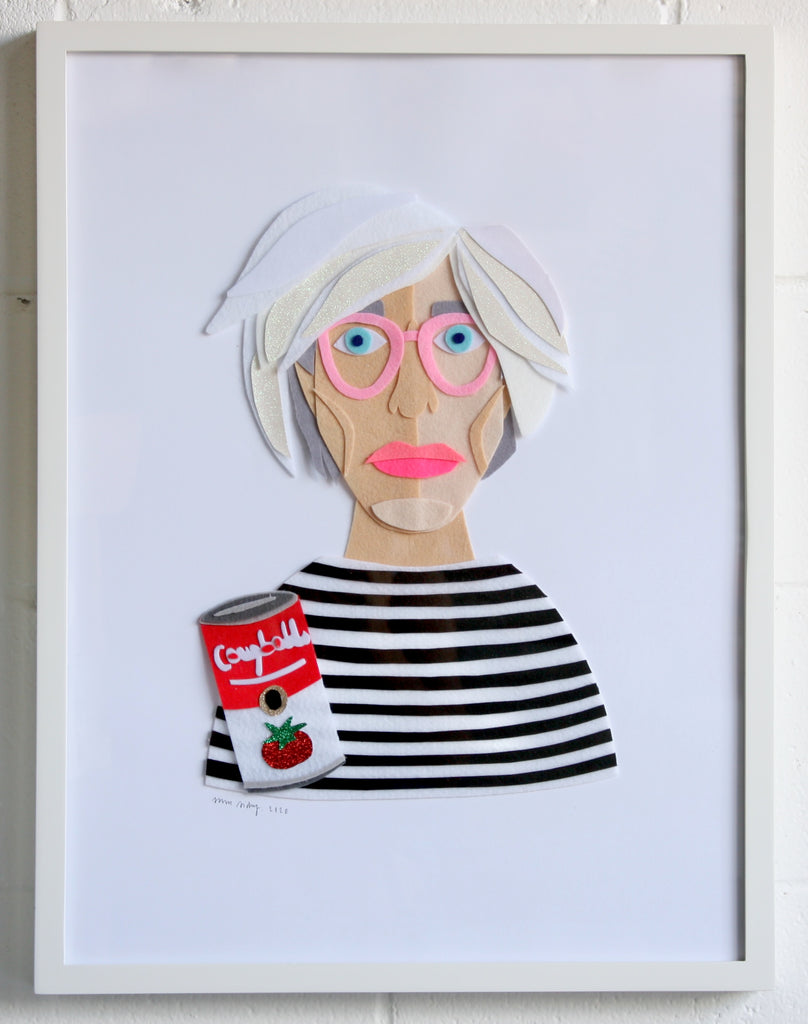 Sam Sidney is originally from New York, and moved to Charleston in 2007. She studied Studio Art at Skidmore College in Saratoga Springs, and earned a Masters in Art Education from NYU. For many years she was an illustrator, but it wasn’t until the quarantine that she started working with felt. She promised herself she would do an art project with her kids each day. One day, she pulled out a small box of felt and made some collages. She made a self portrait out of felt, posted it online, and the rest is history! She free hand cuts felt pieces to create protists of celebrities, pets, food and drinks. When she is not making things out of felt, you can find her at the beach with her 4 kids and 2 dogs.