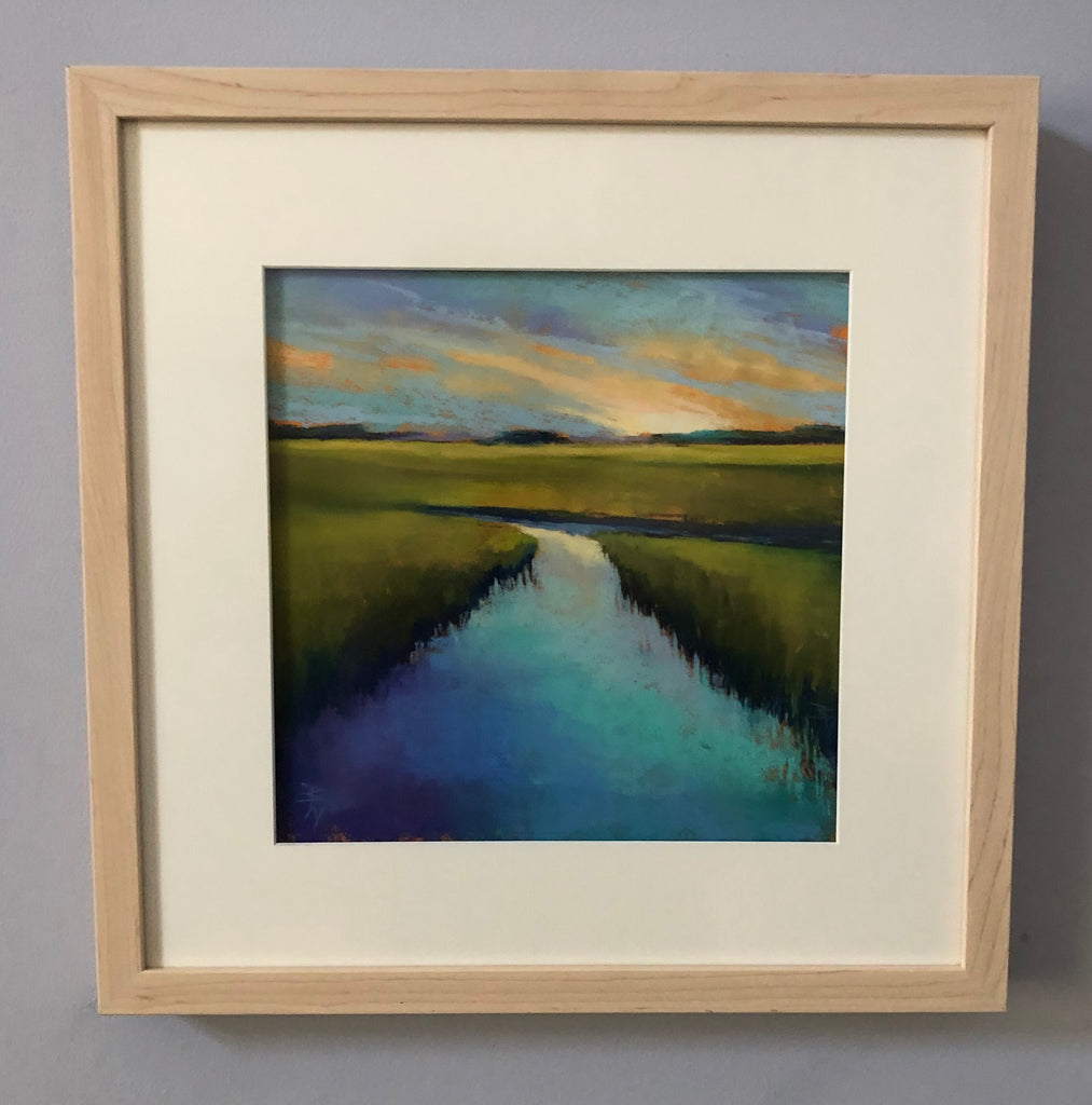 pastel on archival sanded paper, framed in a maple wood frame with conservation acrylic