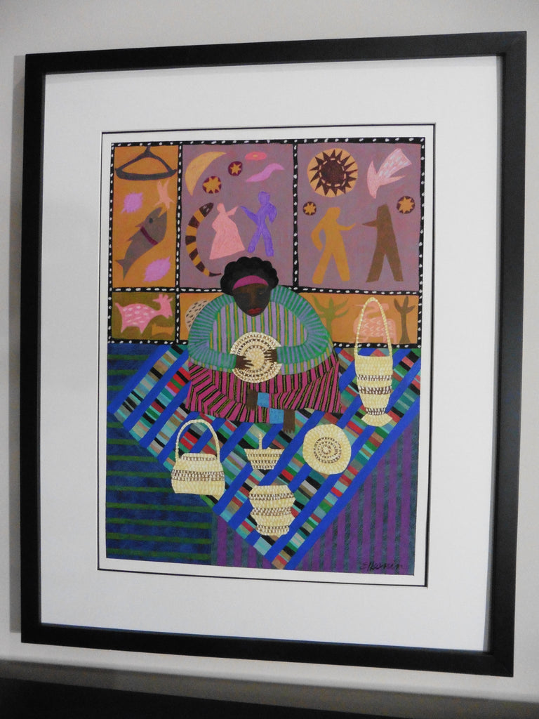 Linda Elksnin's inspiration comes from textiles, outsider artists, and mainstream artists such as Mark Rothko, Romare Bearden, and Marc Chagall. She enjoys incorporating symbols, shapes, and subject matter from a variety of cultures, including those of the American South, Appalachia, and Haiti, as well as the aboriginal people of Panama and Australia. Linda uses a variety of media (acrylic, watercolor, gouache, color pencil, pastel) and works on paper, canvas, and wood. Whether abstract or loosely based on reality, the common thread of all her work is color and graphically pleasing design. Her work is often described as whimsical and happy. Linda's passion for art began in elementary school when she took classes at the Philadelphia College of Art. Shortly after earning a BFA from Syracuse University, her career path took a different turn when she taught art to children with disabilities. After earning master's and doctoral degrees in special education from the University of Virginia, Elksnin came to The Citadel to coordinate the Graduate Special Education Program. She retired as Professor Emerita in 2006 and returned to painting full time. Elksnin's work has been shown throughout the southeast in galleries and at juried art shows. She was the Piccolo Spoleto Poster Artist in 2012 and the North Charleston Arts Festival Design winner in 2013. Linda works out of her Mount Pleasant Studio and at REDUX where she enjoys figure drawing and screen printing.