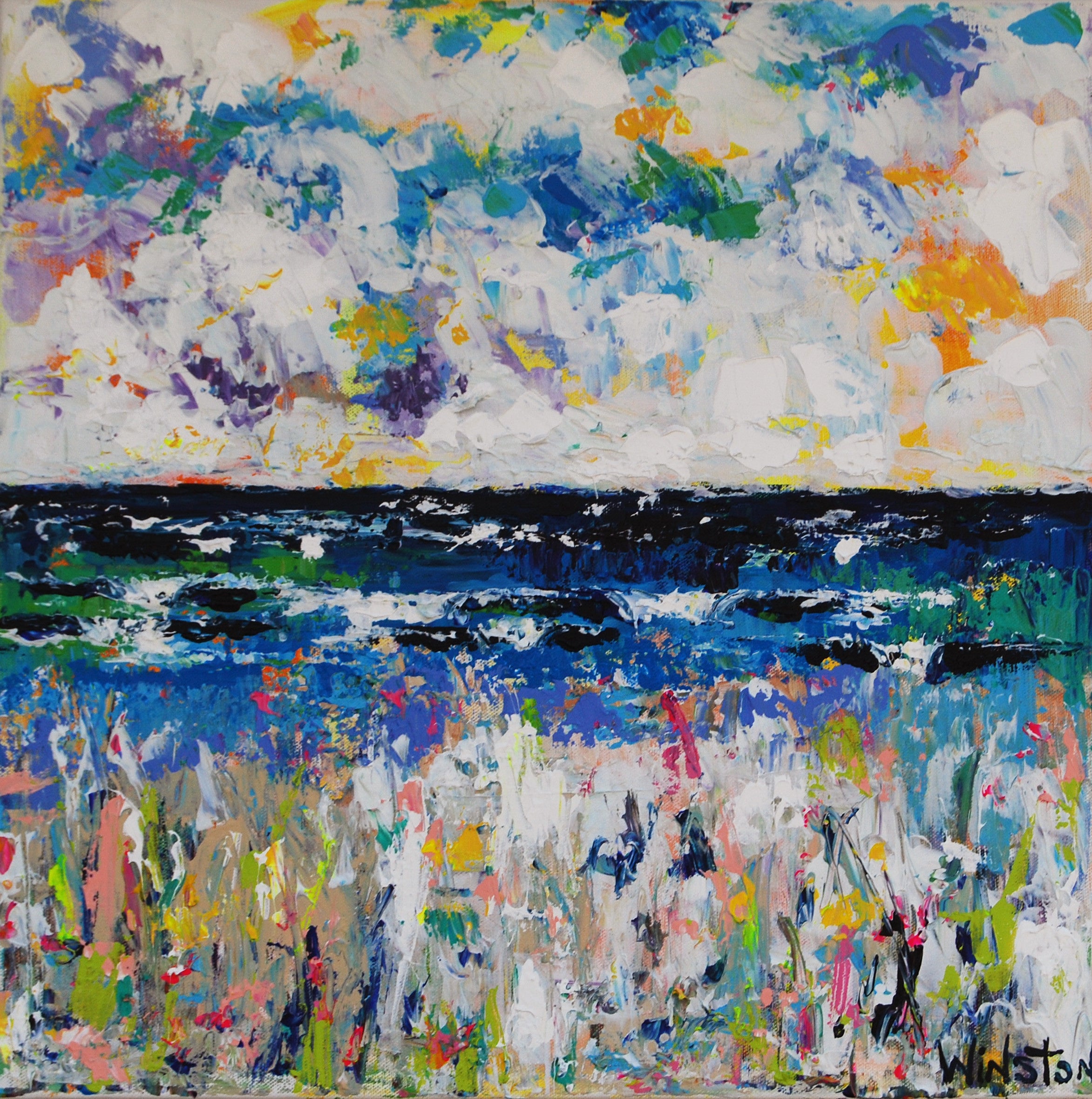 Winston Wiant is originally from Amelia Island, Florida, and full of southern charm. She brings her whimsical and witty delight to each and every painting. Having painted since childhood, she received a Bachelor of Arts degree in Studio Art at Brenau University and has been pursuing her love of art ever since. Her paintings are full of texture, using the palette knife and free brushstrokes to layer the paint, creating one energetic piece after another. She lives in Athens, GA, with her husband and two daughters and paints in her home studio. “Art to me is a form of self-expression. The way I feel that day reflects in my work. My love of bold color and texture is both distinctive and captivating.”