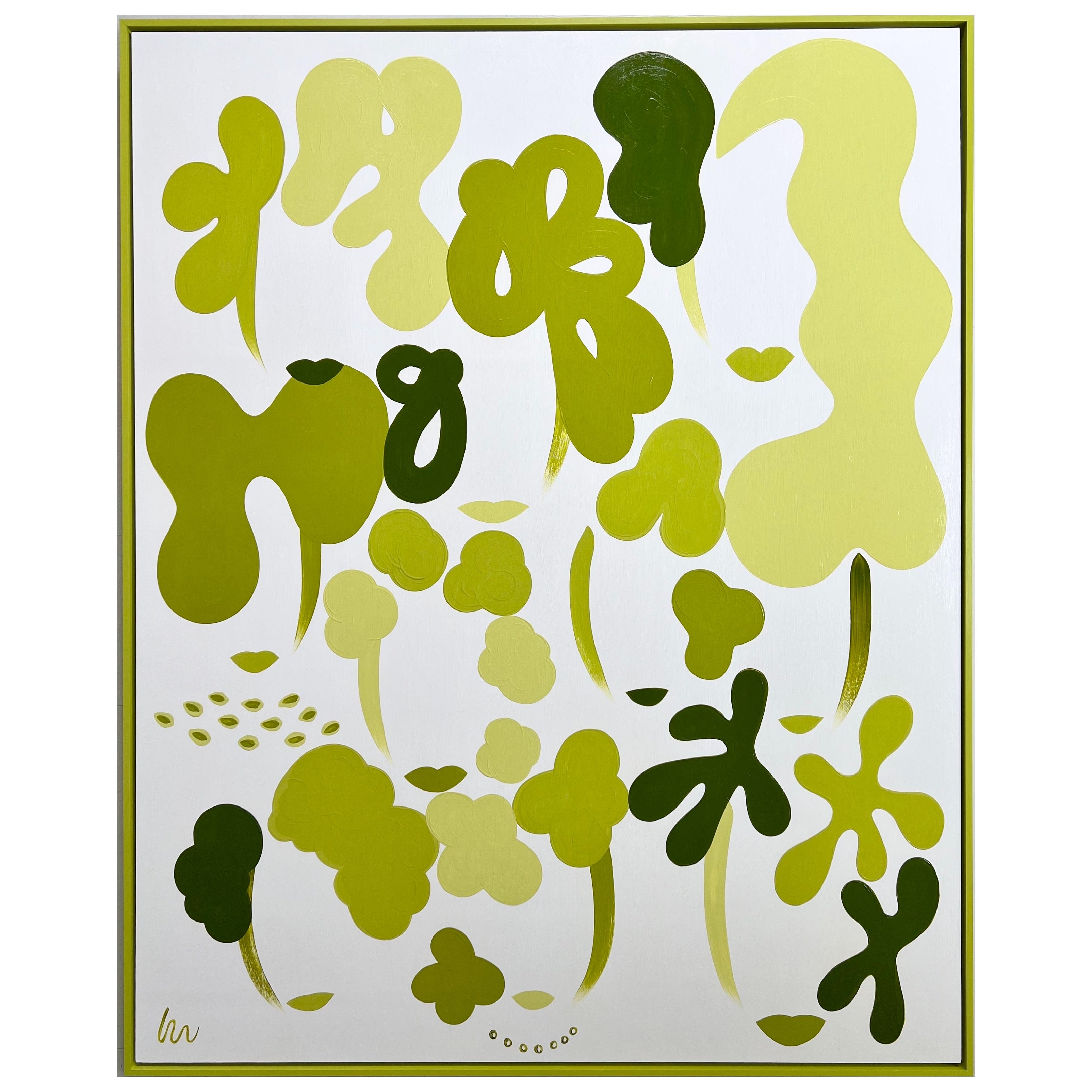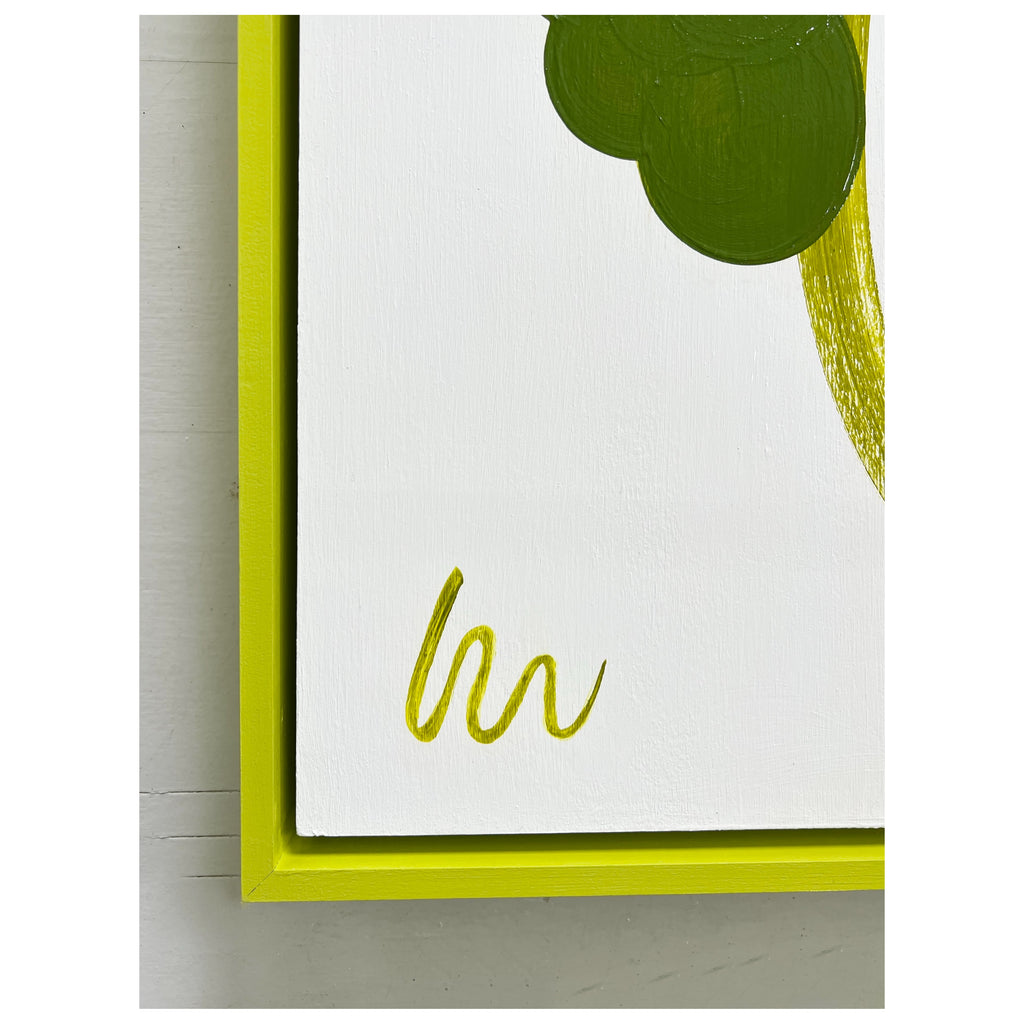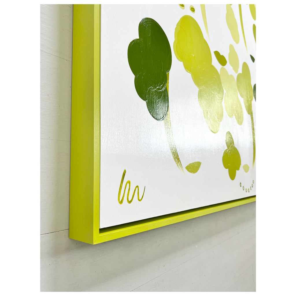 acrylic on cradled birch panel, in wooden chartreuse floater frame