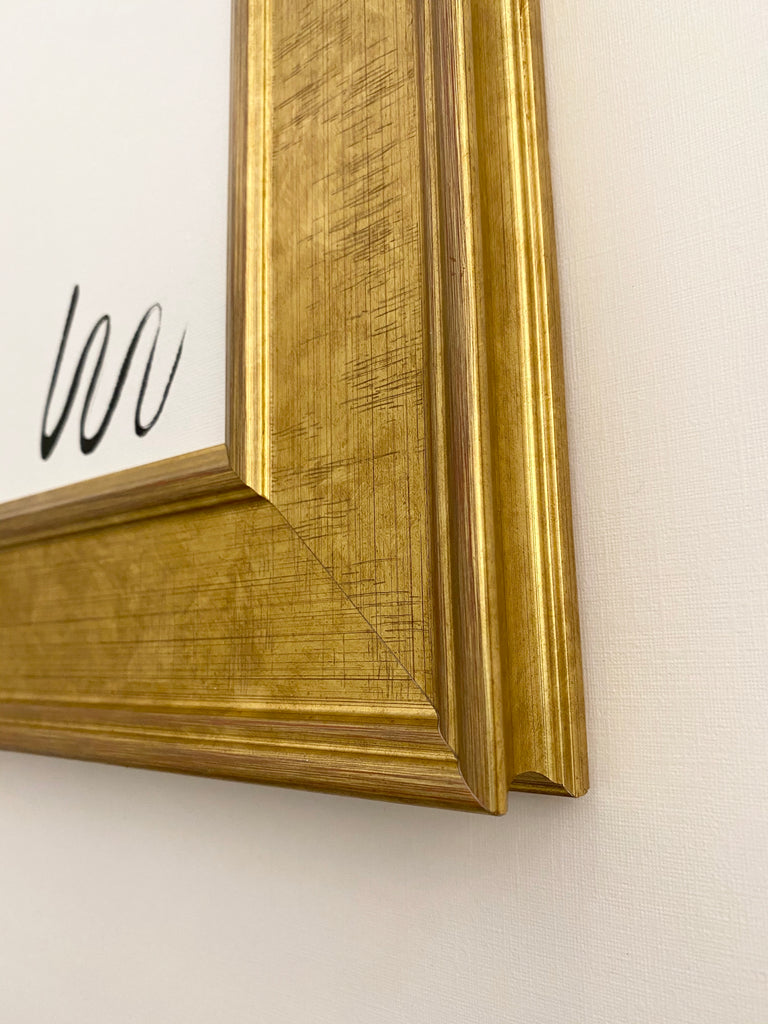 acrylic on canvas panel, in textured yellow gold frame