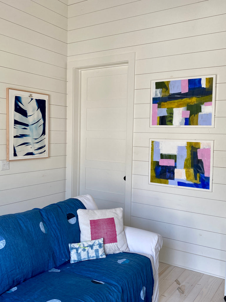Michelle was born in Asheville, NC with a deeply rooted “maker” heritage. She developed a love of art, nature, travel + spirituality which greatly inform the foundation of her work. Influenced by her mother + grandmother, she has been using her hands + imagination since she was a child to create artful objects. Her work often reflects colors + patterns found in nature where she spent much of her childhood with her dad, who was an avid-outdoorsman. She enjoys a clean, abstract aesthetic using mainly water-based mediums, paper + natural fibers. In almost all of her work you will see her intrigue with the opposing forces of dualism. Her works are spiritual + reflective outpourings that she tries to nurture daily. Faith + family are her highest priorities so, she works from her home studio in Sullivan’s Island, SC where both peaceful + joyful inspiration are found. She resides there with her beloved husband, 2 loving teenage boys + their lazy yellow lab. Her work has been seen throughout the Southeast + licensed in worldwide markets.