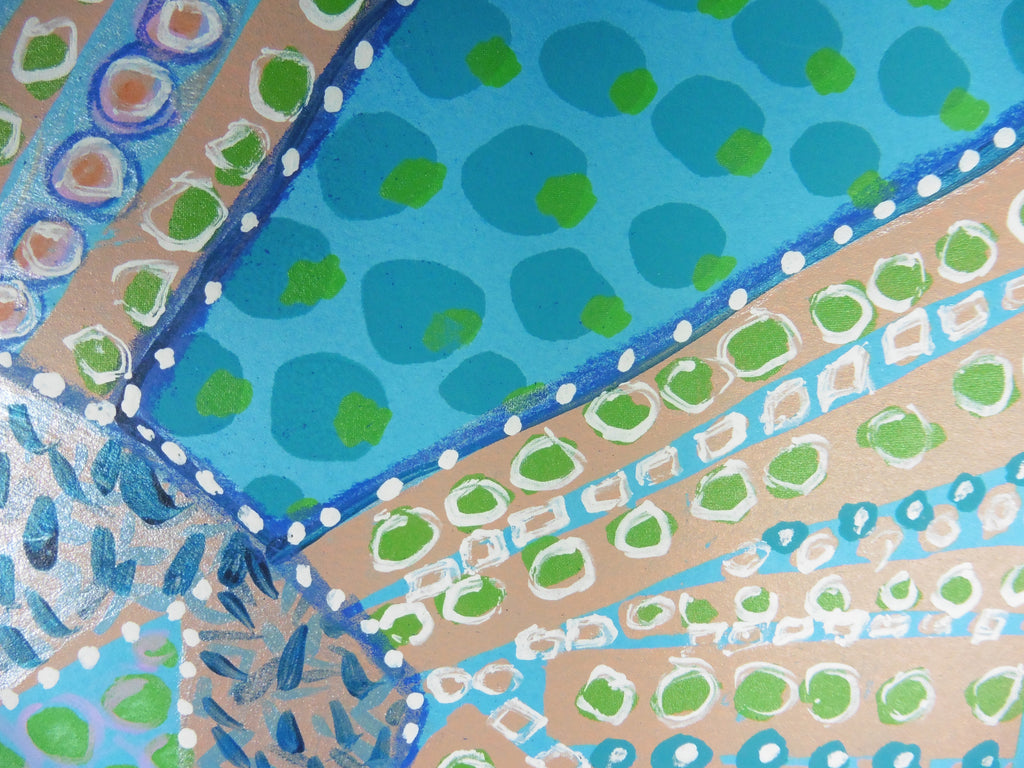 Linda Elksnin's inspiration comes from textiles, outsider artists, and mainstream artists such as Mark Rothko, Romare Bearden, and Marc Chagall. She enjoys incorporating symbols, shapes, and subject matter from a variety of cultures, including those of the American South, Appalachia, and Haiti, as well as the aboriginal people of Panama and Australia. Linda uses a variety of media (acrylic, watercolor, gouache, color pencil, pastel) and works on paper, canvas, and wood. Whether abstract or loosely based on reality, the common thread of all her work is color and graphically pleasing design. Her work is often described as whimsical and happy. Linda's passion for art began in elementary school when she took classes at the Philadelphia College of Art. Shortly after earning a BFA from Syracuse University, her career path took a different turn when she taught art to children with disabilities. After earning master's and doctoral degrees in special education from the University of Virginia, Elksnin came to The Citadel to coordinate the Graduate Special Education Program. She retired as Professor Emerita in 2006 and returned to painting full time. Elksnin's work has been shown throughout the southeast in galleries and at juried art shows. She was the Piccolo Spoleto Poster Artist in 2012 and the North Charleston Arts Festival Design winner in 2013. Linda works out of her Mount Pleasant Studio and at REDUX where she enjoys figure drawing and screen printing.