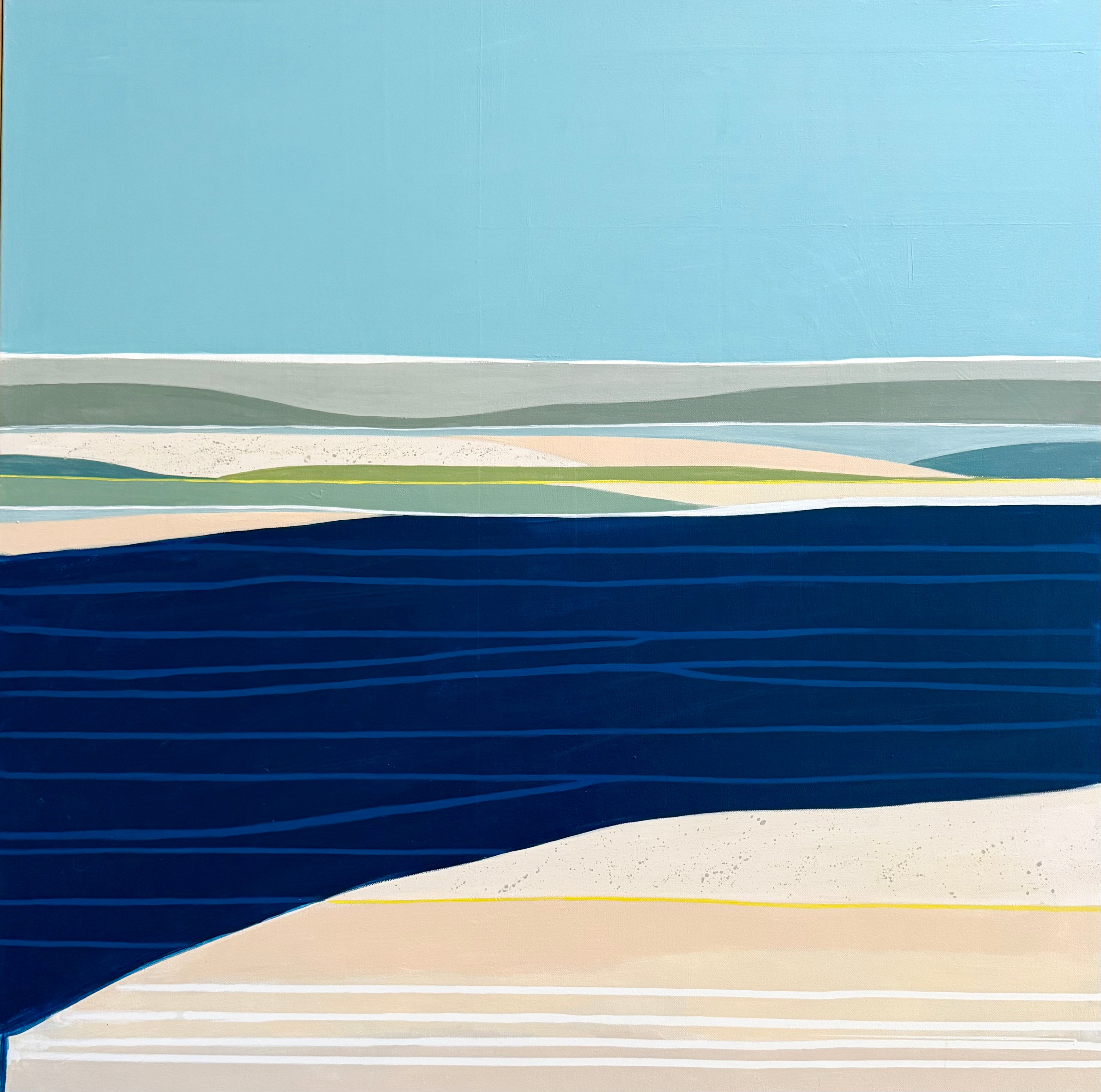Cindy DeAntonio is a mixed media artist who uses distinct lines and shapes to create her unique and highly recognizable style. Her work is comprised of abstracts, modern interpretations of traditional lowcountry landscapes, and cubist inspired still lifes. She draws inspiration from a variety of sources including fashion, design and her natural surroundings. Cindys love of bold colors and balance are apparent in each one of her pieces. Her work have been featured in Coastal Living, Serena and Lily, Garden and Gun, and SIP magazine. Cindy grew up in Columbia, South Carolina and earned a Studio Art degree from the University of South Carolina. She currently lives on Isle of Palms, SC with her family.