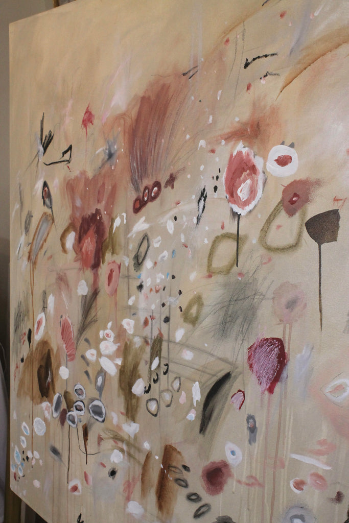 acrylic, oil stick, graphite, charcoal and pastel on gallery wrapped canvas