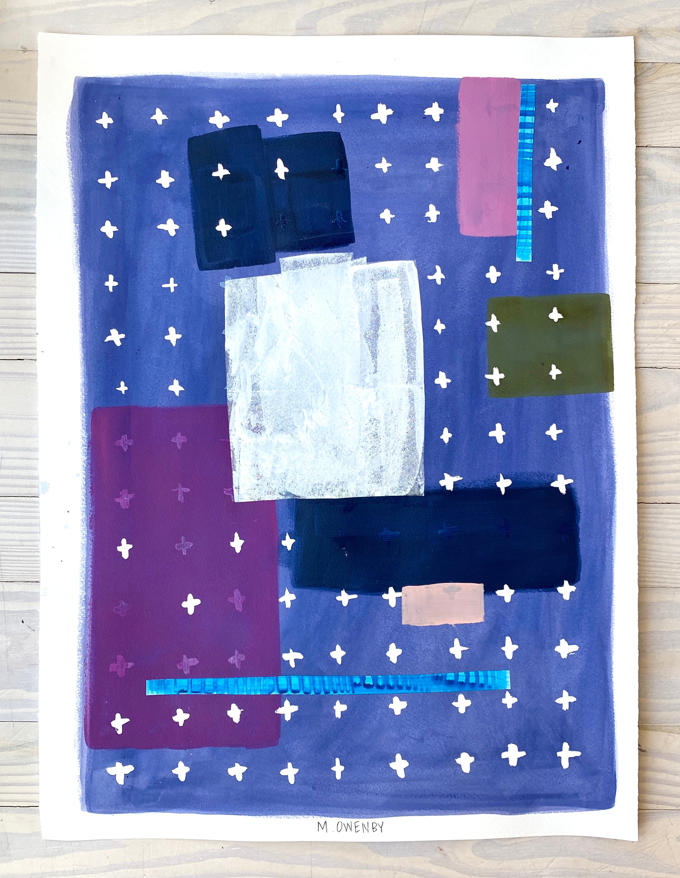 Michelle was born in Asheville, NC with a deeply rooted “maker” heritage. She developed a love of art, nature, travel + spirituality which greatly inform the foundation of her work. Influenced by her mother + grandmother, she has been using her hands + imagination since she was a child to create artful objects. Her work often reflects colors + patterns found in nature where she spent much of her childhood with her dad, who was an avid-outdoorsman. She enjoys a clean, abstract aesthetic using mainly water-based mediums, paper + natural fibers. In almost all of her work you will see her intrigue with the opposing forces of dualism. Her works are spiritual + reflective outpourings that she tries to nurture daily. Faith + family are her highest priorities so, she works from her home studio in Sullivan’s Island, SC where both peaceful + joyful inspiration are found. She resides there with her beloved husband, 2 loving teenage boys + their lazy yellow lab. Her work has been seen throughout the Southeast + licensed in worldwide markets.