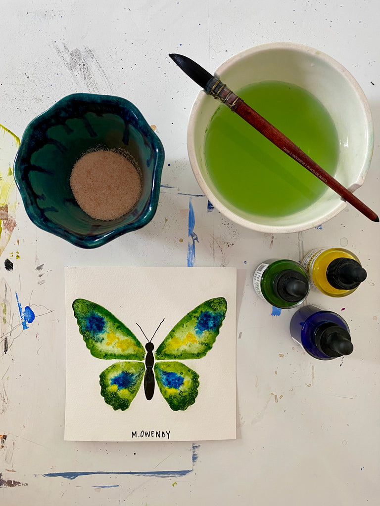 Michelle was born in Asheville, NC with a deeply rooted “maker” heritage. She developed a love of art, nature, travel + spirituality which greatly inform the foundation of her work. Influenced by her mother + grandmother, she has been using her hands + imagination since she was a child to create artful objects. Her work often reflects colors + patterns found in nature where she spent much of her childhood with her dad, who was an avid-outdoorsman. She enjoys a clean, abstract aesthetic using mainly water-based mediums, paper + natural fibers. In almost all of her work you will see her intrigue with the opposing forces of dualism. Her works are spiritual + reflective outpourings that she tries to nurture daily. Faith + family are her highest priorities so, she works from her home studio in Sullivan’s Island, SC where both peaceful + joyful inspiration are found. She resides there with her beloved husband, 2 loving teenage boys + their lazy yellow lab. Her work has been seen throughout the Southeast + licensed in worldwide markets.
