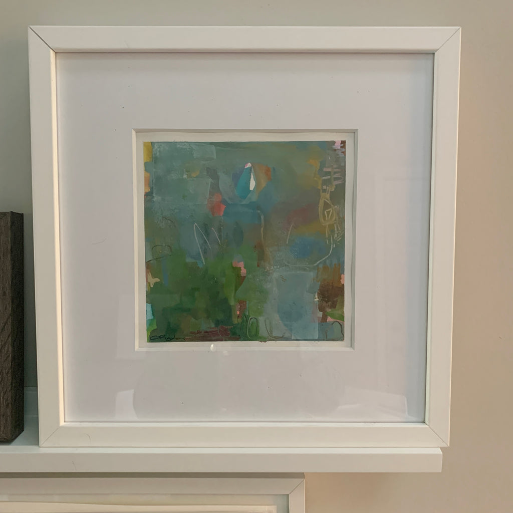 I find ultimate freedom in abstract expressionism and as such, I’m in search of the best way to convey who I am at the moment of creating. It is not to say it is a free-for-all; there is still structure within. I implement the same principles that realist painters employ with the absence of representation: composition, hierarchy, variety, juxtaposition are vital to a successful painting. But I do not limit myself to one medium or the other. I work in oil, acrylics and gouache and depending on what I’m exploring at the time I will choose one or more to express it. I also explore through a combination of paint and collage. It is through all of these various methods and mediums that I am able to share my fullest expression of self and my authenticity. My paintings ultimately are self portraits that are created from both past experiences and also future hopes and dreams. It is my goal to invoke a feeling for the viewer. When it does I have succeede