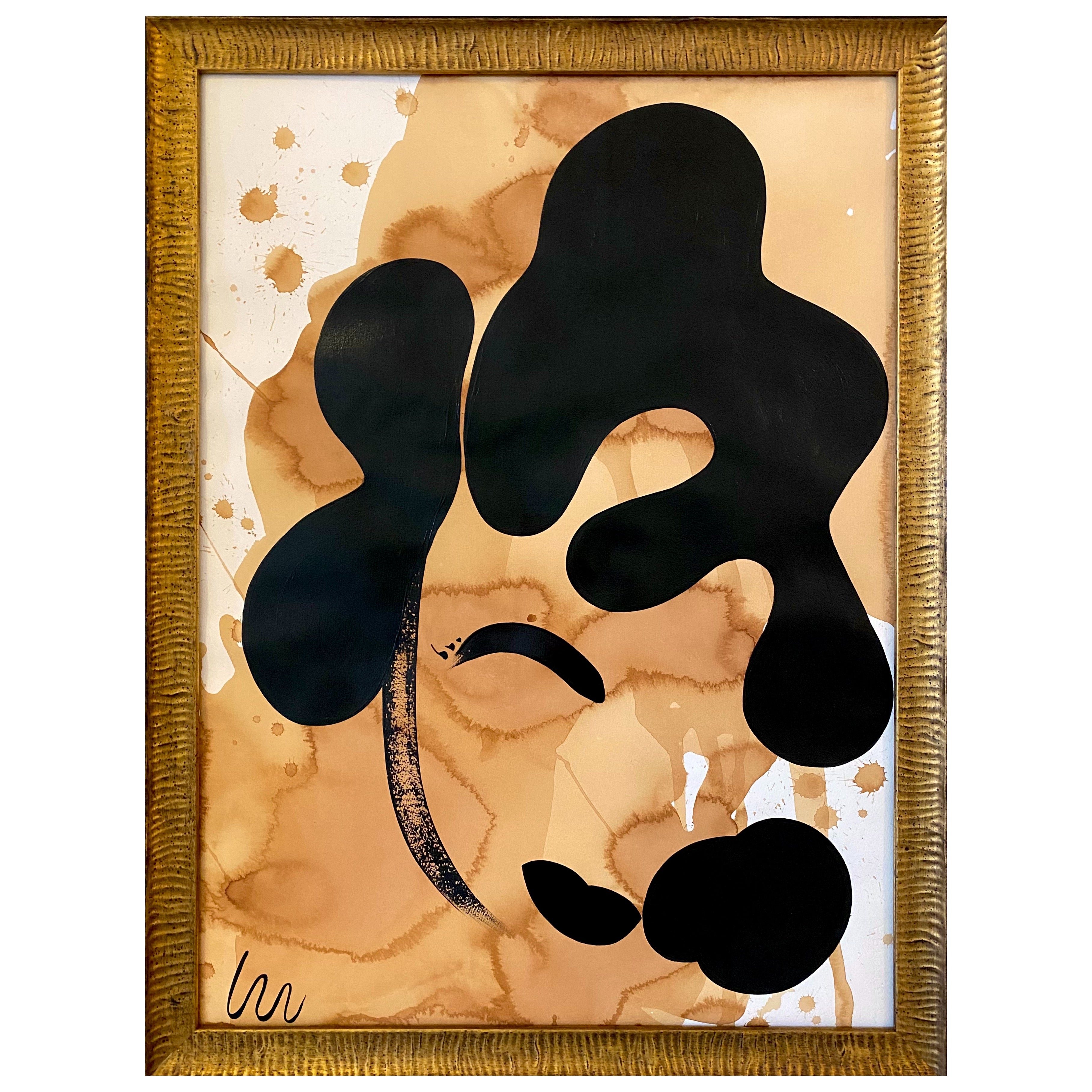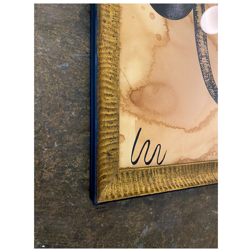 acrylic on tea stained paper, in ridged gold frame with museum glass
