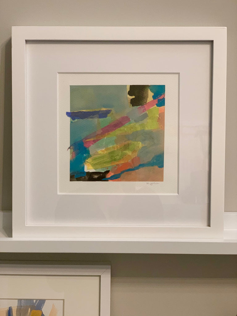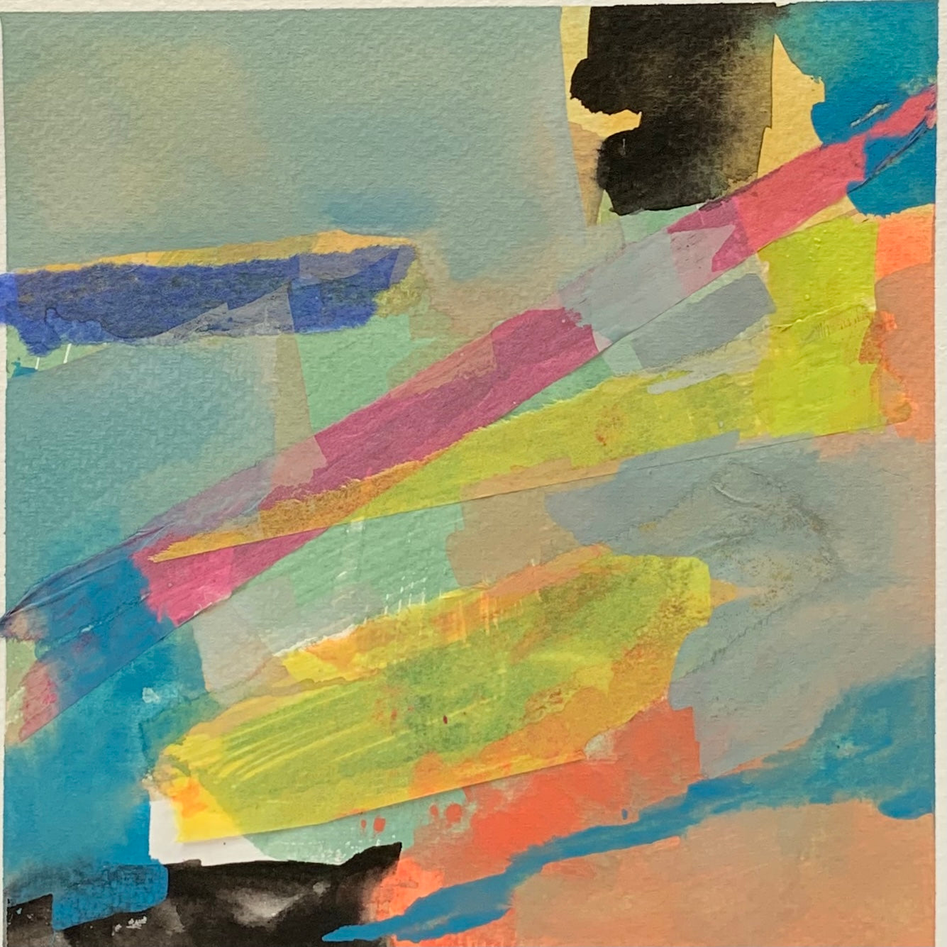 I find ultimate freedom in abstract expressionism and as such, I’m in search of the best way to convey who I am at the moment of creating. It is not to say it is a free-for-all; there is still structure within. I implement the same principles that realist painters employ with the absence of representation: composition, hierarchy, variety, juxtaposition are vital to a successful painting. But I do not limit myself to one medium or the other. I work in oil, acrylics and gouache and depending on what I’m exploring at the time I will choose one or more to express it. I also explore through a combination of paint and collage. It is through all of these various methods and mediums that I am able to share my fullest expression of self and my authenticity. My paintings ultimately are self portraits that are created from both past experiences and also future hopes and dreams. It is my goal to invoke a feeling for the viewer. When it does I have succeede