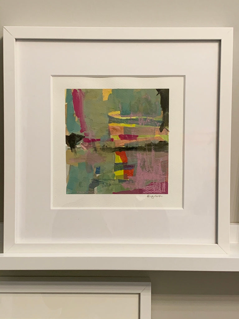 I find ultimate freedom in abstract expressionism and as such, I’m in search of the best way to convey who I am at the moment of creating. It is not to say it is a free-for-all; there is still structure within. I implement the same principles that realist painters employ with the absence of representation: composition, hierarchy, variety, juxtaposition are vital to a successful painting. But I do not limit myself to one medium or the other. I work in oil, acrylics and gouache and depending on what I’m exploring at the time I will choose one or more to express it. I also explore through a combination of paint and collage. It is through all of these various methods and mediums that I am able to share my fullest expression of self and my authenticity. My paintings ultimately are self portraits that are created from both past experiences and also future hopes and dreams. It is my goal to invoke a feeling for the viewer. When it does I have succeede