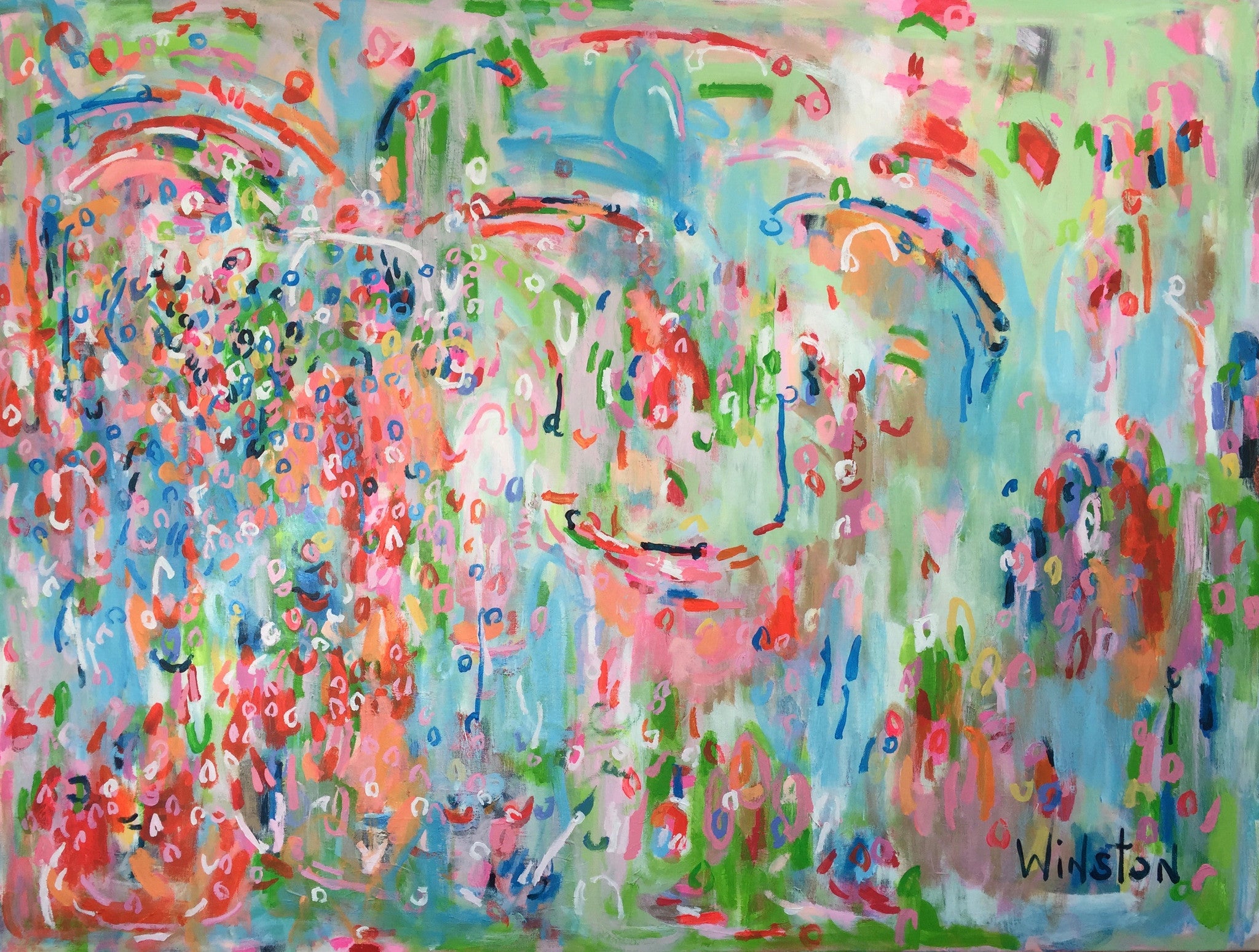 Winston Wiant is originally from Amelia Island, Florida, and full of southern charm. She brings her whimsical and witty delight to each and every painting. Having painted since childhood, she received a Bachelor of Arts degree in Studio Art at Brenau University and has been pursuing her love of art ever since. Her paintings are full of texture, using the palette knife and free brushstrokes to layer the paint, creating one energetic piece after another. She lives in Athens, GA, with her husband and two daughters and paints in her home studio. “Art to me is a form of self-expression. The way I feel that day reflects in my work. My love of bold color and texture is both distinctive and captivating.”