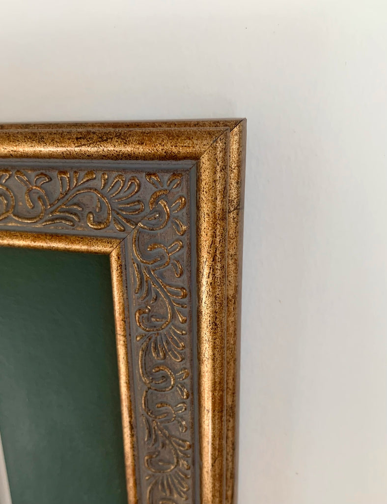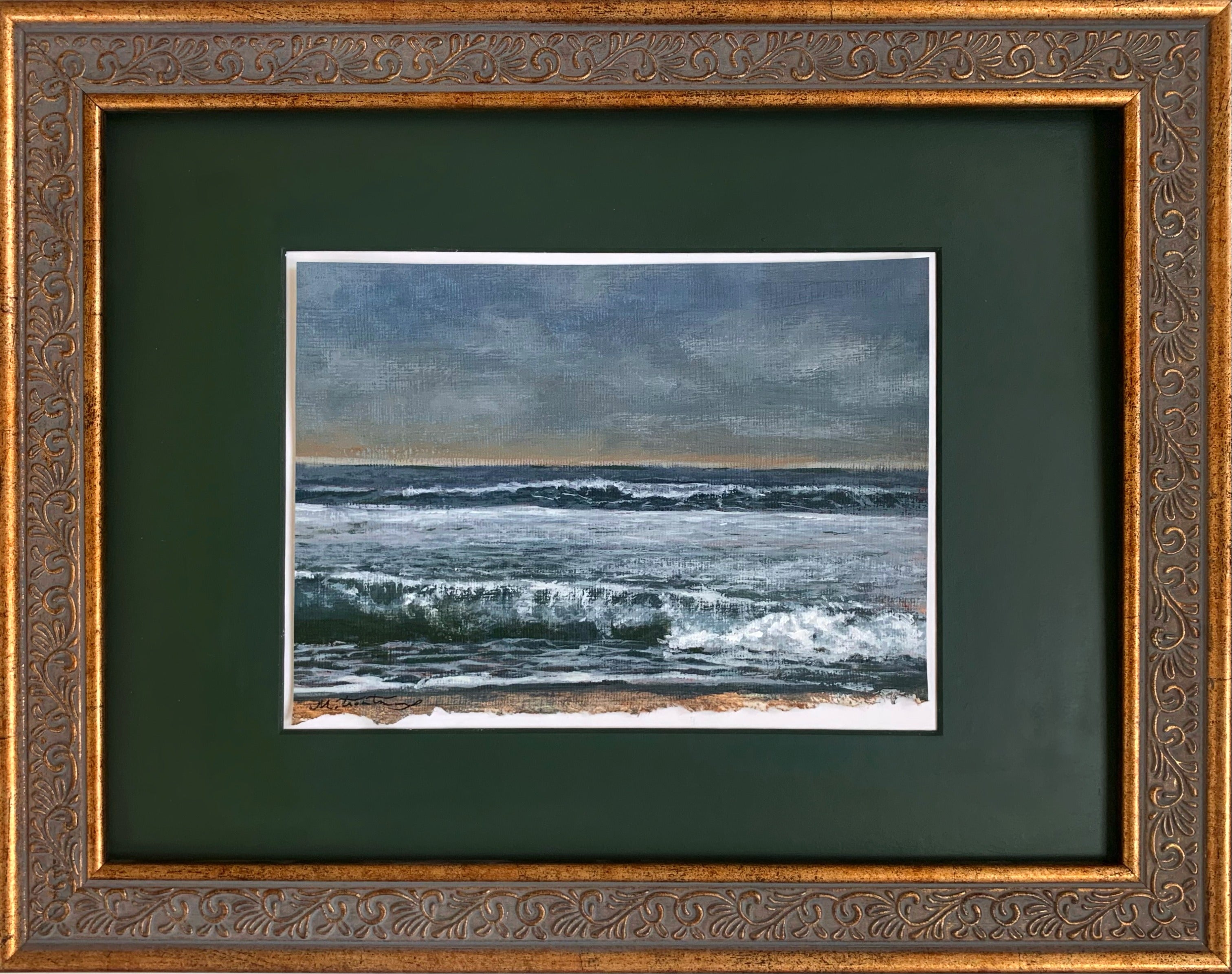 acrylic on deckled edge watercolor paper, in green mat and gold frame