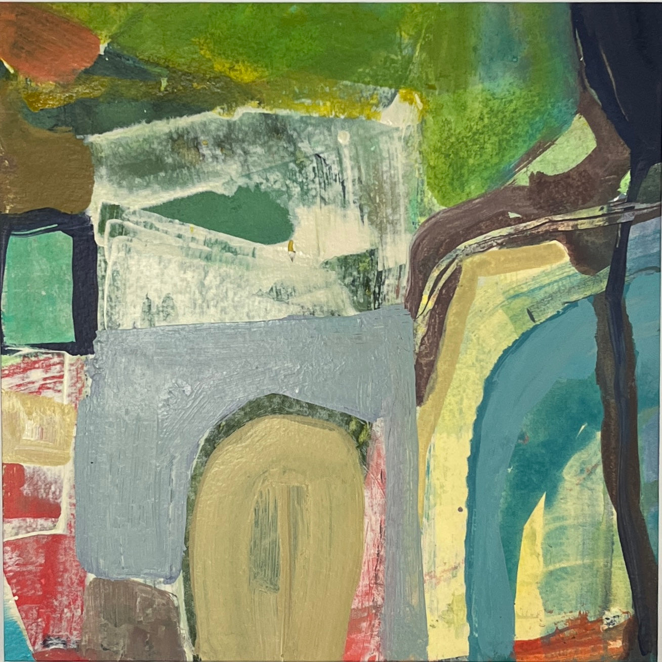 I find ultimate freedom in abstract expressionism and as such, I’m in search of the best way to convey who I am at the moment of creating. It is not to say it is a free-for-all; there is still structure within. I implement the same principles that realist painters employ with the absence of representation: composition, hierarchy, variety, juxtaposition are vital to a successful painting. But I do not limit myself to one medium or the other. I work in oil, acrylics and gouache and depending on what I’m exploring at the time I will choose one or more to express it. I also explore through a combination of paint and collage. It is through all of these various methods and mediums that I am able to share my fullest expression of self and my authenticity. My paintings ultimately are self portraits that are created from both past experiences and also future hopes and dreams. It is my goal to invoke a feeling for the viewer. When it does I have succeede