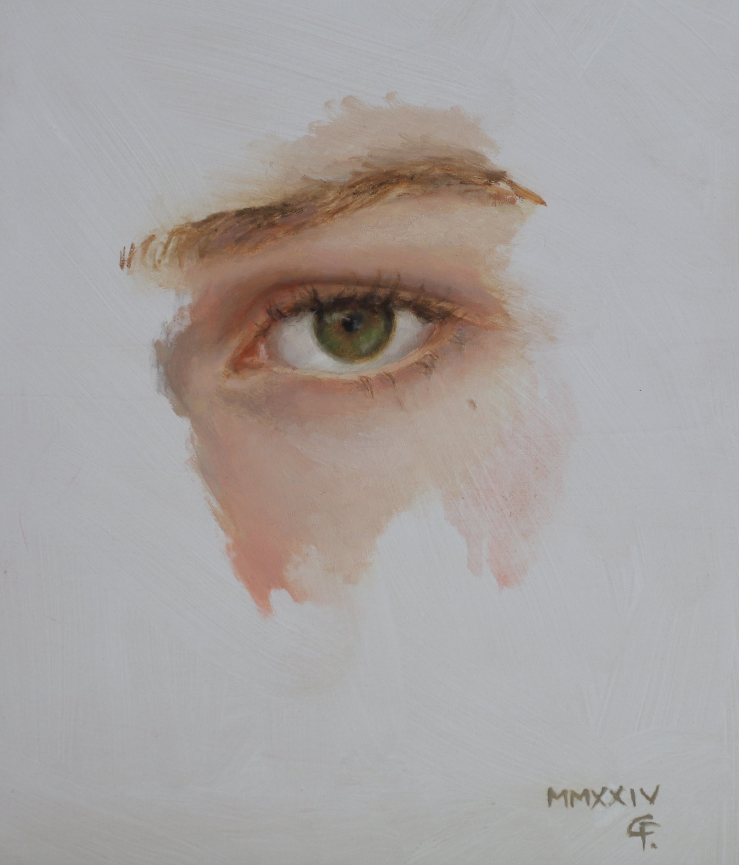 Size for eye painting vignette is 8x6; oil on cradled birch panel.