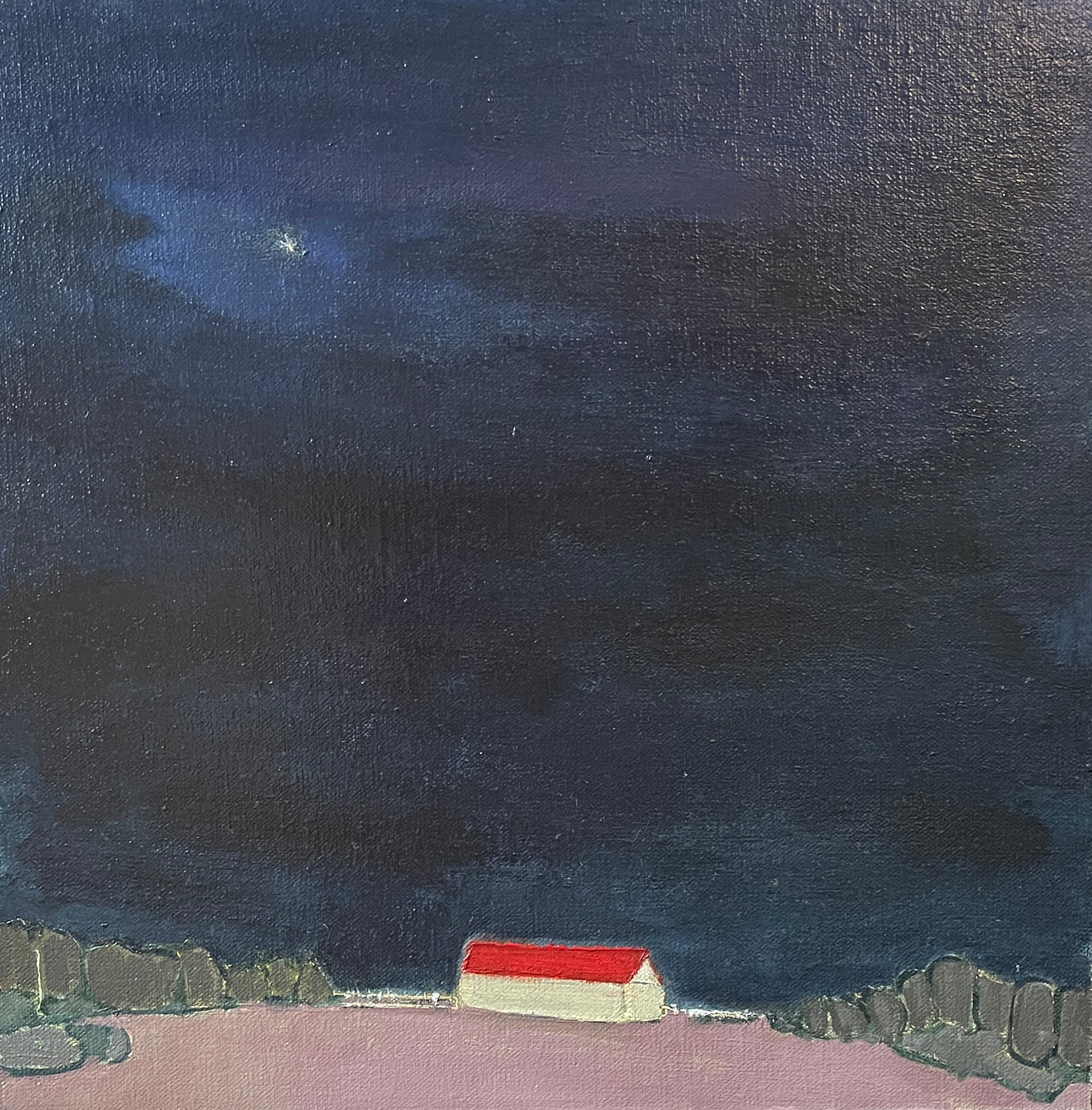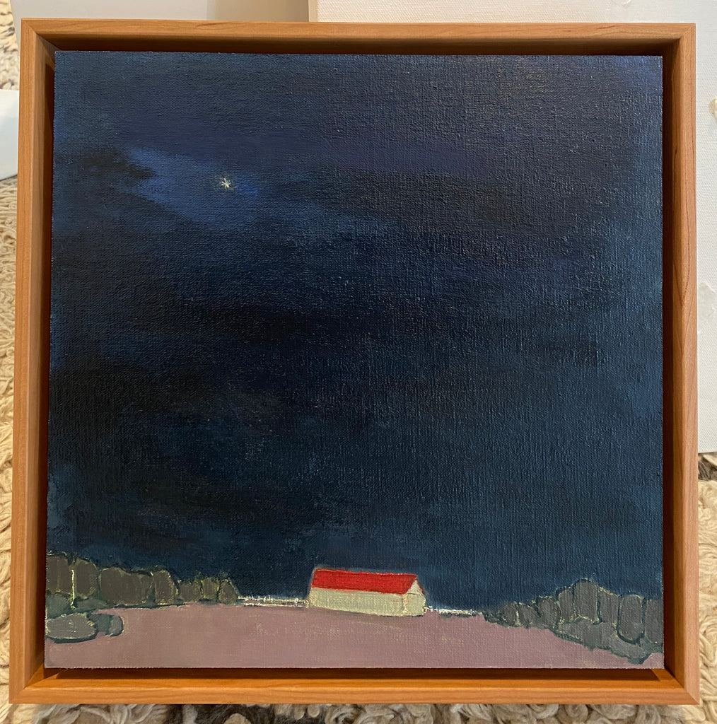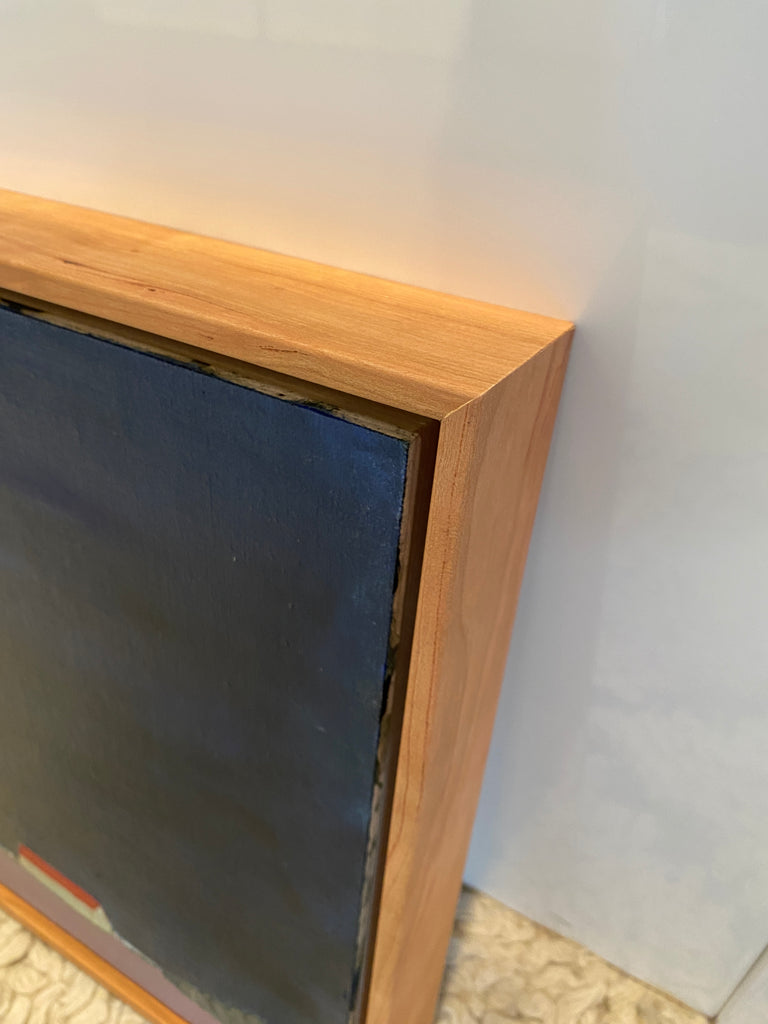 oil on linen covered birch panel, in natural wood floater frame