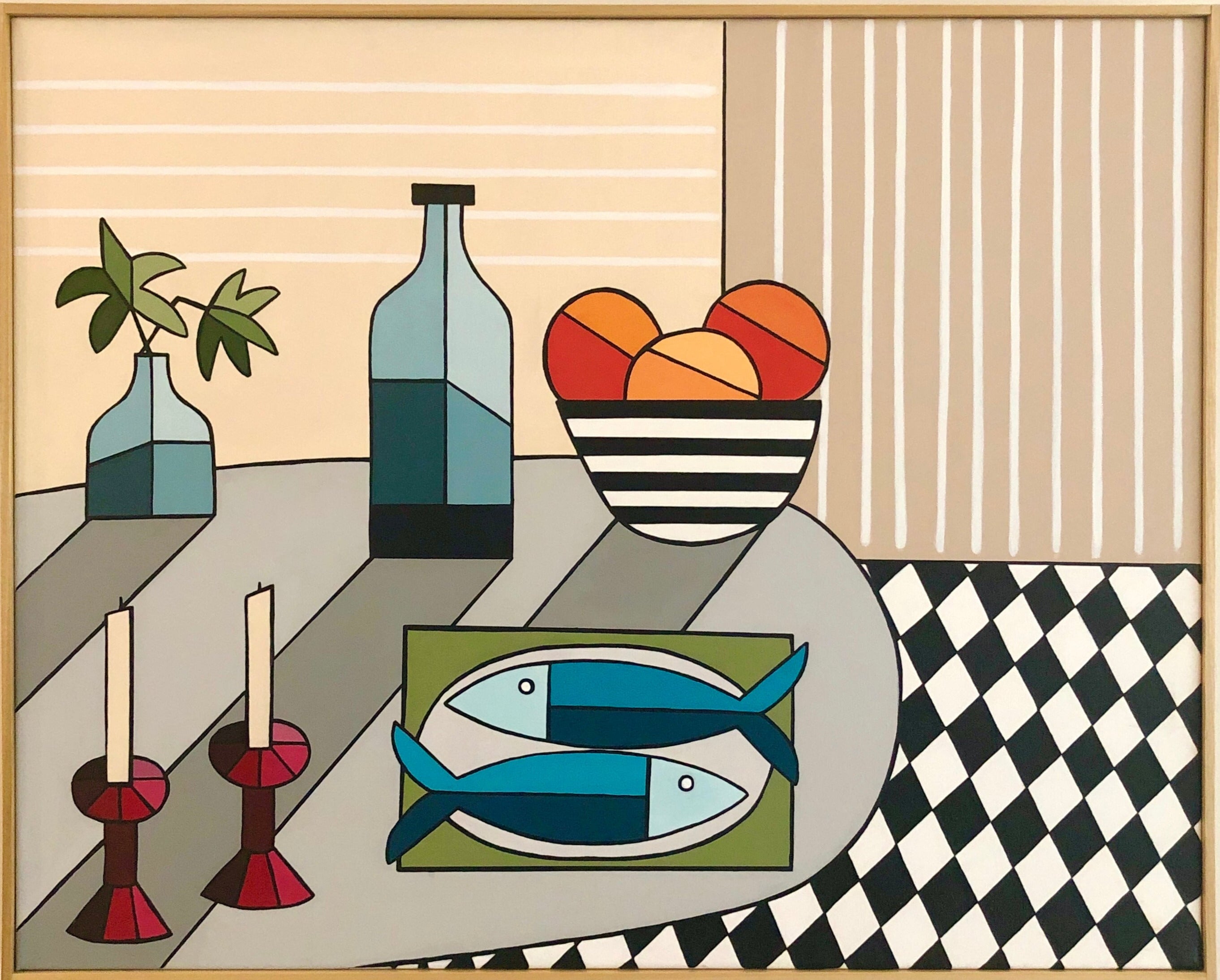 Cindy DeAntonio is a mixed media artist who uses distinct lines and shapes to create her unique and highly recognizable style. Her work is comprised of abstracts, modern interpretations of traditional lowcountry landscapes, and cubist inspired still lifes. She draws inspiration from a variety of sources including fashion, design and her natural surroundings. Cindys love of bold colors and balance are apparent in each one of her pieces. Her work have been featured in Coastal Living, Serena and Lily, Garden and Gun, and SIP magazine. Cindy grew up in Columbia, South Carolina and earned a Studio Art degree from the University of South Carolina. She currently lives on Isle of Palms, SC with her family.