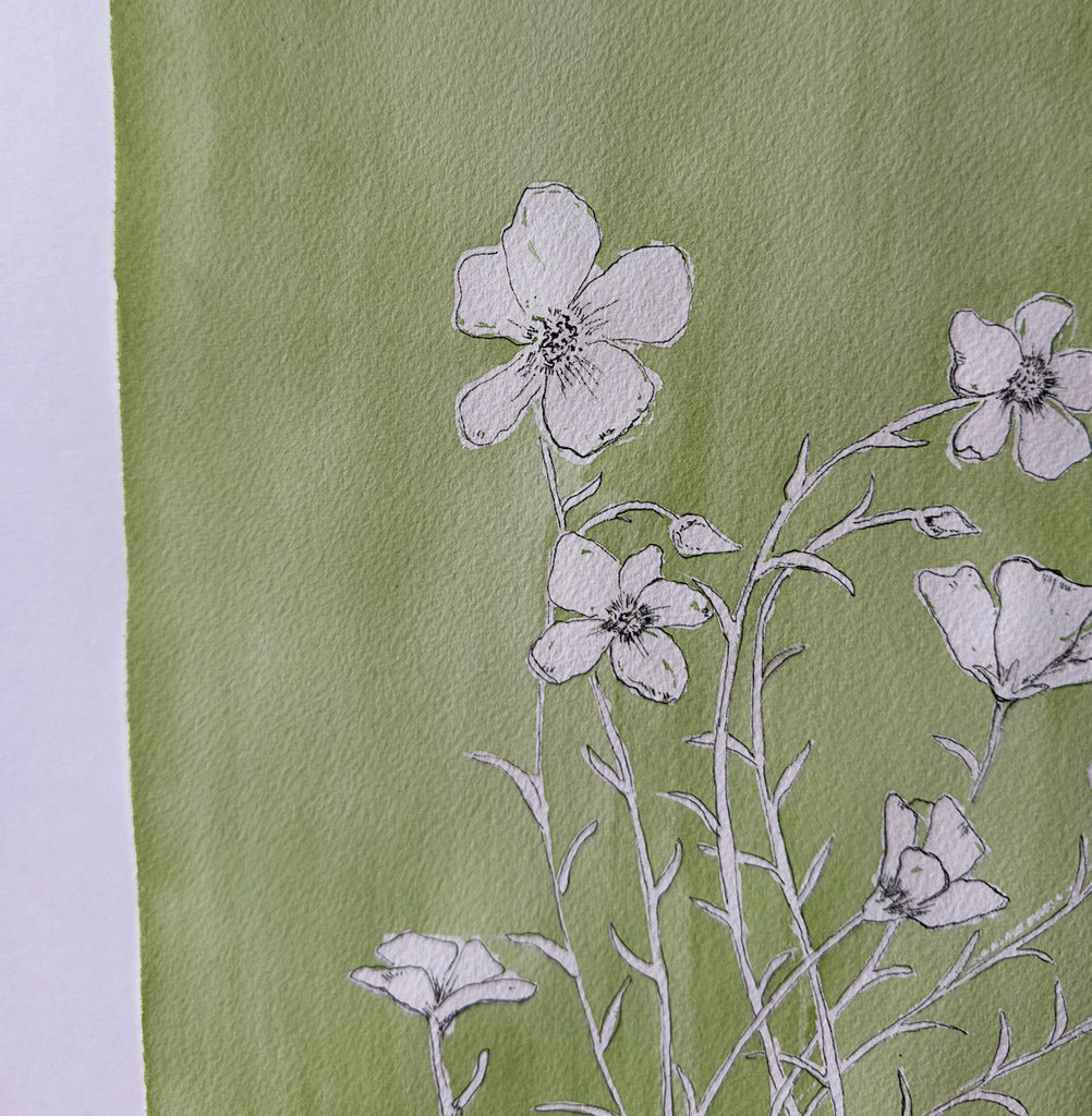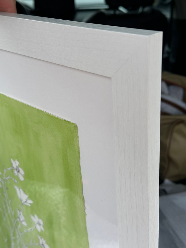 watercolor and acrylic on deckled edge paper, in white frame