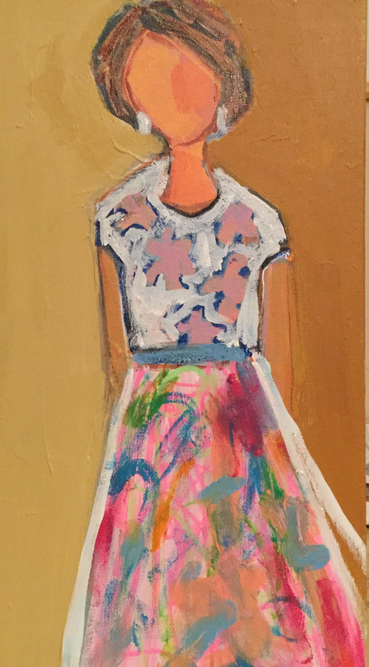 Page Morris picked up a paintbrush in third grade and never looked back. Largely self-taught, her client list reaches as far as Canada and includes syndicated columnist Kathleen Parker. Galleries representing her work include: Verve and Over the Mantle in Columbia, SC; Grand Bohemian Gallery in Charleston, SC and One Kings Lane. "My subject matter is women who are feminine, colorful, playful, strong, and beautiful. I use paper, pencil, markers, oil sticks, and paint to achieve a multi-dimensional look. I love texture because the viewers see even more when they stop to take a second look. I adhere to a rigid schedule of painting each day. Creativity only happens if I'm hard at work in my studio. I love what I do and hope my viewers can see that. It's a joyous experience to pick up a paintbrush. It's what I do and what I am."
