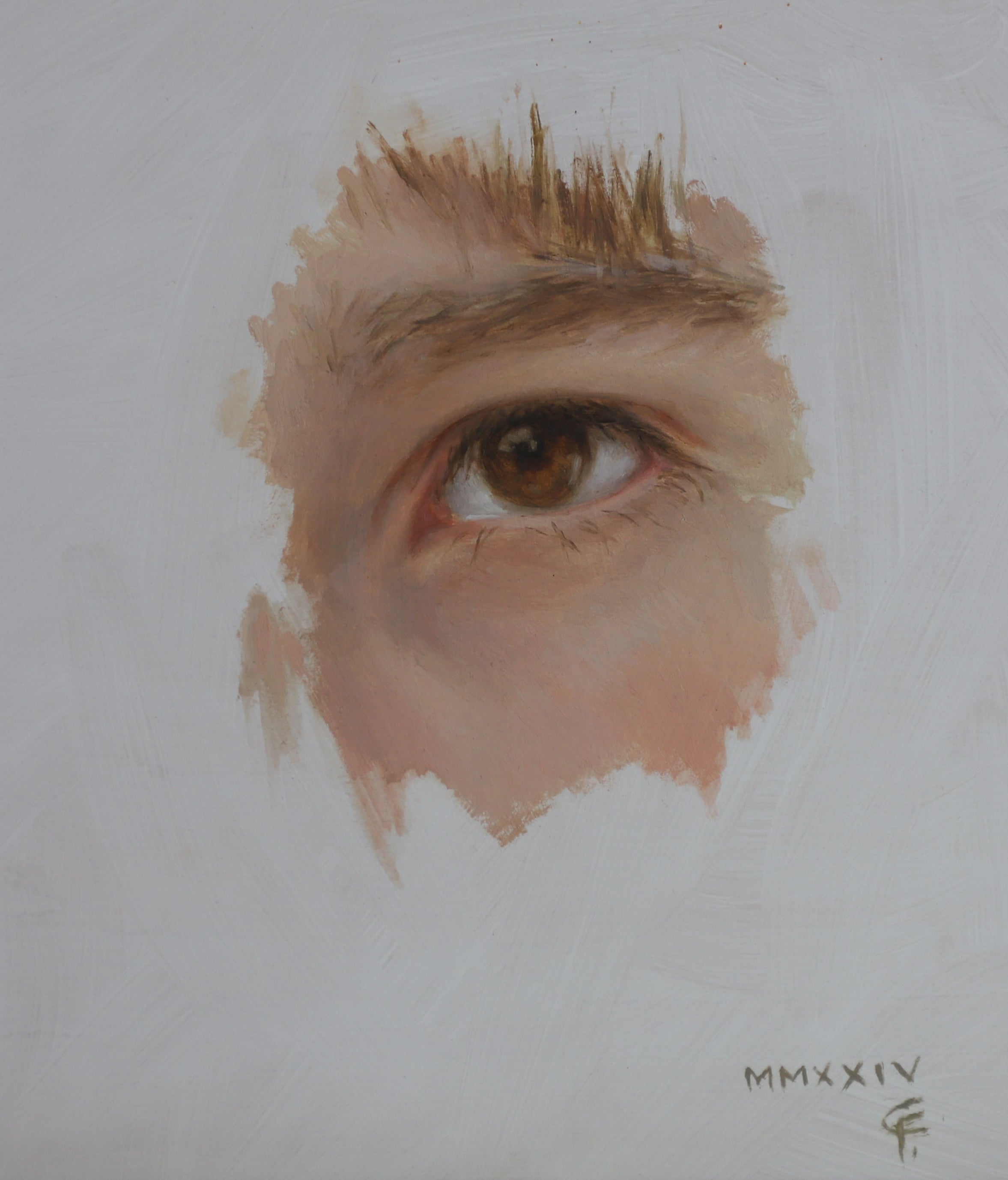 Size for eye painting vignette is 8x6; oil on cradled birch panel.