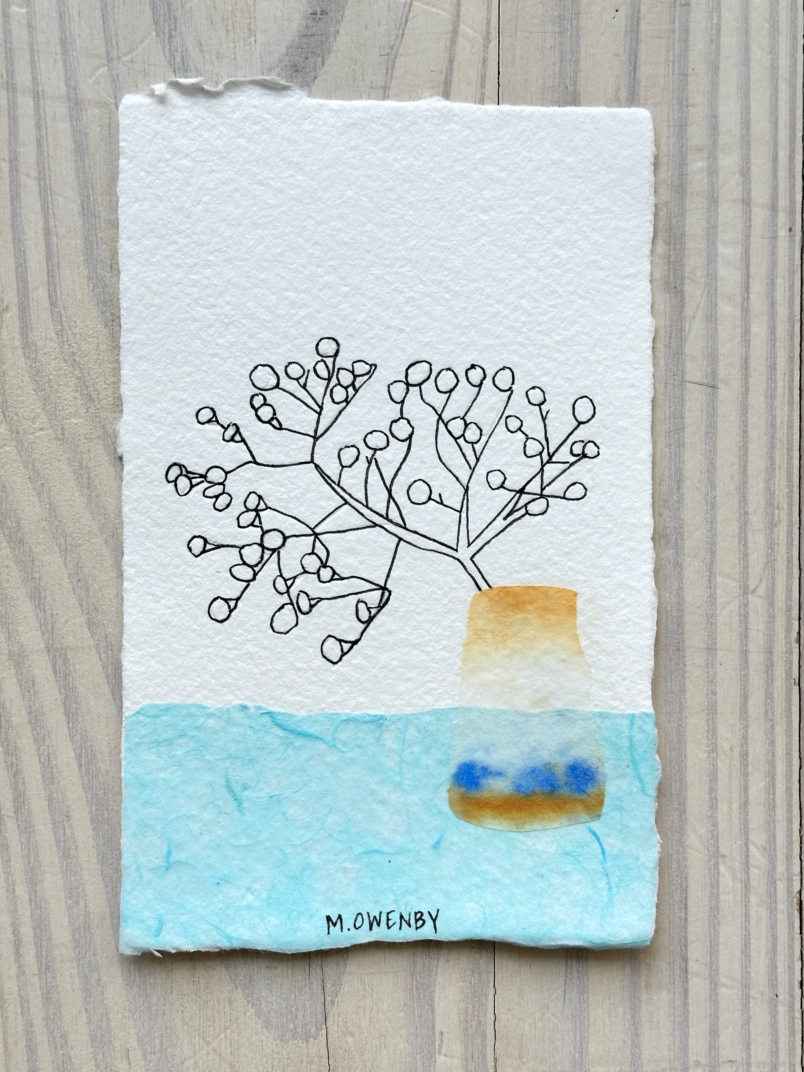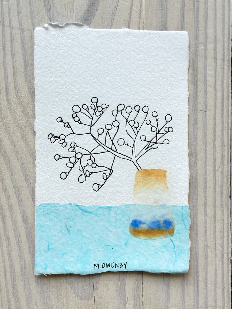 Michelle was born in Asheville, NC with a deeply rooted “maker” heritage. She developed a love of art, nature, travel + spirituality which greatly inform the foundation of her work. Influenced by her mother + grandmother, she has been using her hands + imagination since she was a child to create artful objects. Her work often reflects colors + patterns found in nature where she spent much of her childhood with her dad, who was an avid-outdoorsman. She enjoys a clean, abstract aesthetic using mainly water-based mediums, paper + natural fibers. In almost all of her work you will see her intrigue with the opposing forces of dualism. Her works are spiritual + reflective outpourings that she tries to nurture daily. Faith + family are her highest priorities so, she works from her home studio in Sullivan’s Island, SC where both peaceful + joyful inspiration are found. She resides there with her beloved husband, 2 loving teenage boys + their lazy yellow lab. Her work has been seen throughout the Southeast + licensed in worldwide markets.