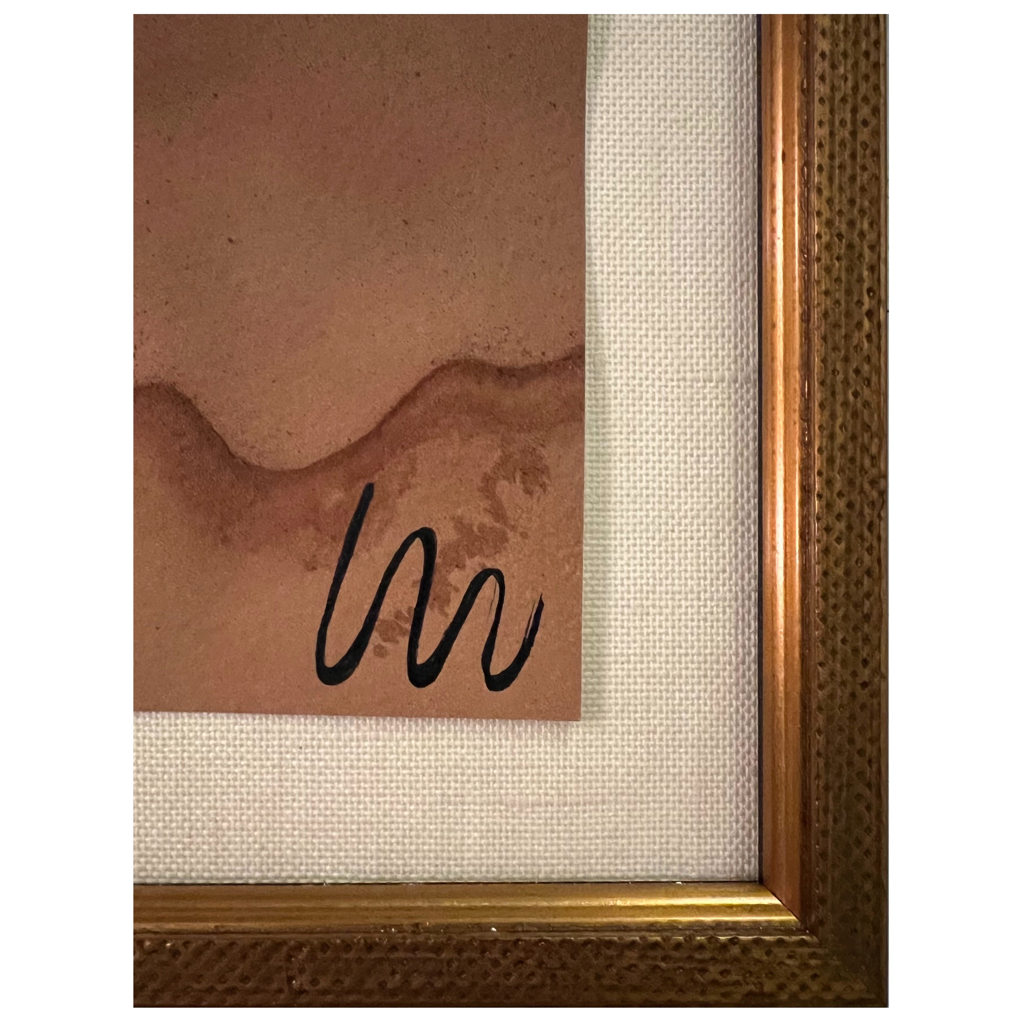 acrylic on tea-stained cold press paper, custom framed in traditional gold frame with cream linen matting, with UltraVue Anti-Reflection PlexiGlass