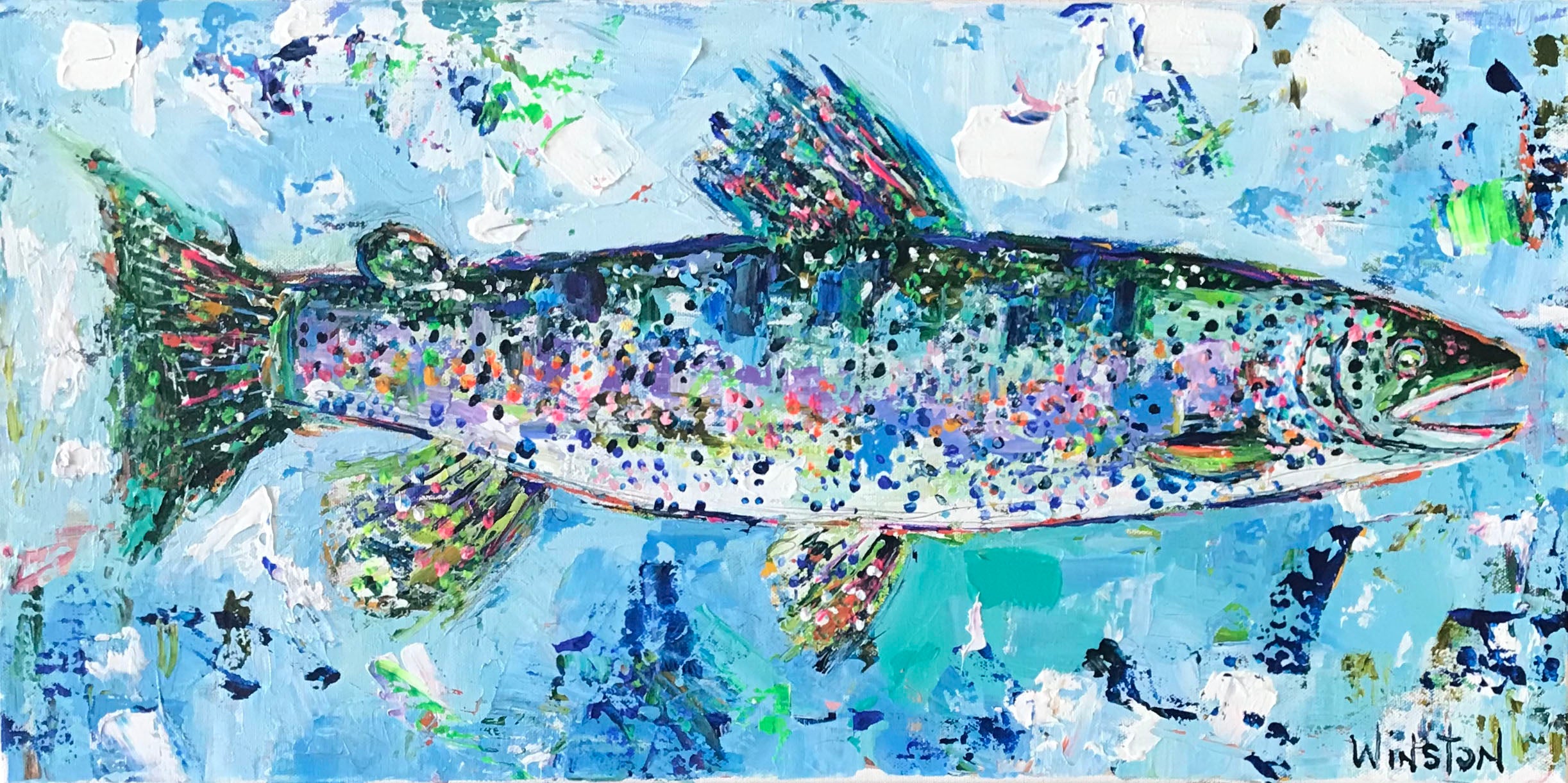 Winston Wiant is originally from Amelia Island, Florida, and full of southern charm. She brings her whimsical and witty delight to each and every painting. Having painted since childhood, she received a Bachelor of Arts degree in Studio Art at Brenau University and has been pursuing her love of art ever since. Her paintings are full of texture, using the palette knife and free brushstrokes to layer the paint, creating one energetic piece after another. She lives in Athens, GA, with her husband and two daughters and paints in her home studio. “Art to me is a form of self-expression. The way I feel that day reflects in my work. My love of bold color and texture is both distinctive and captivating.”