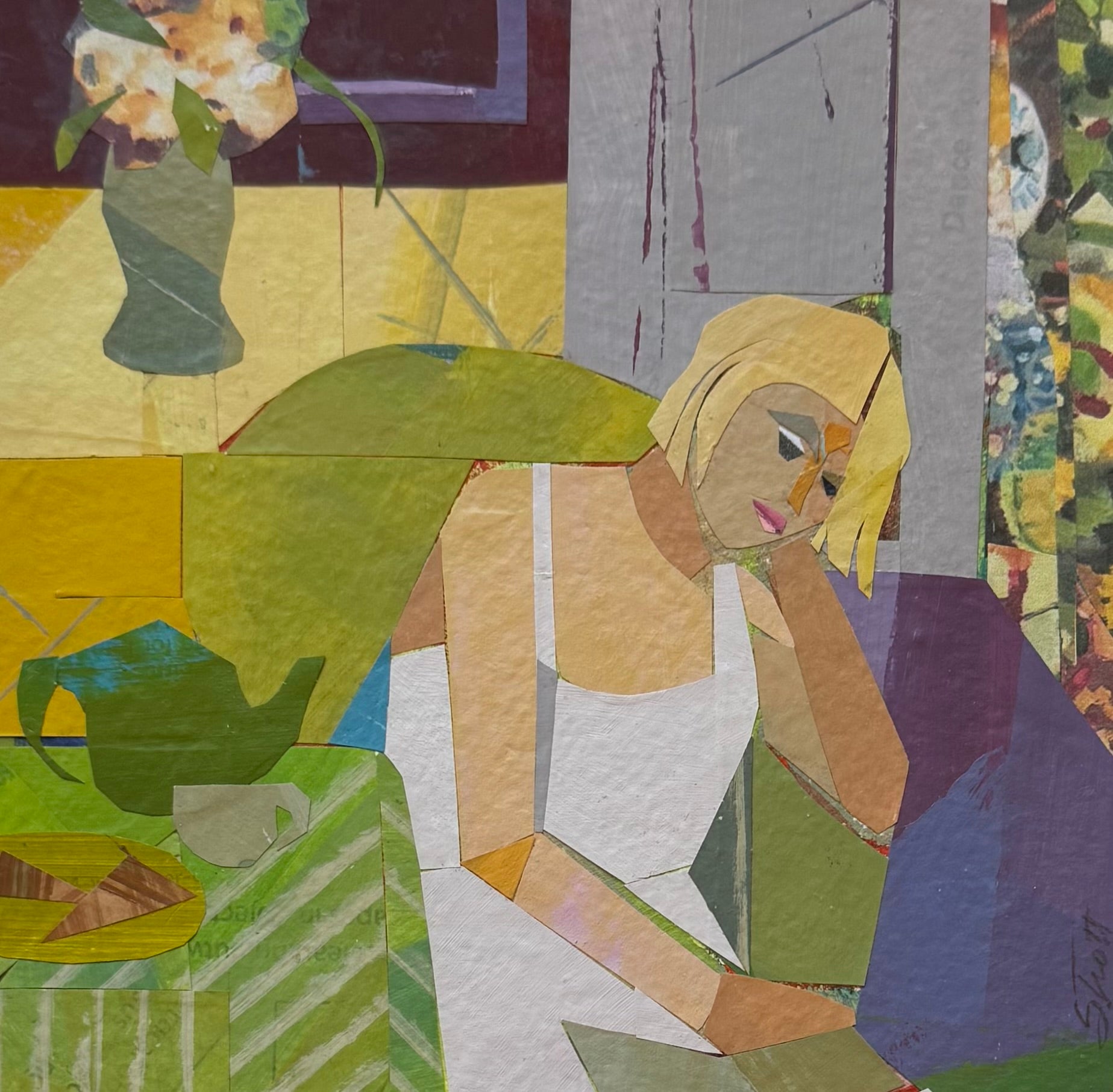 paper collage in gold frame