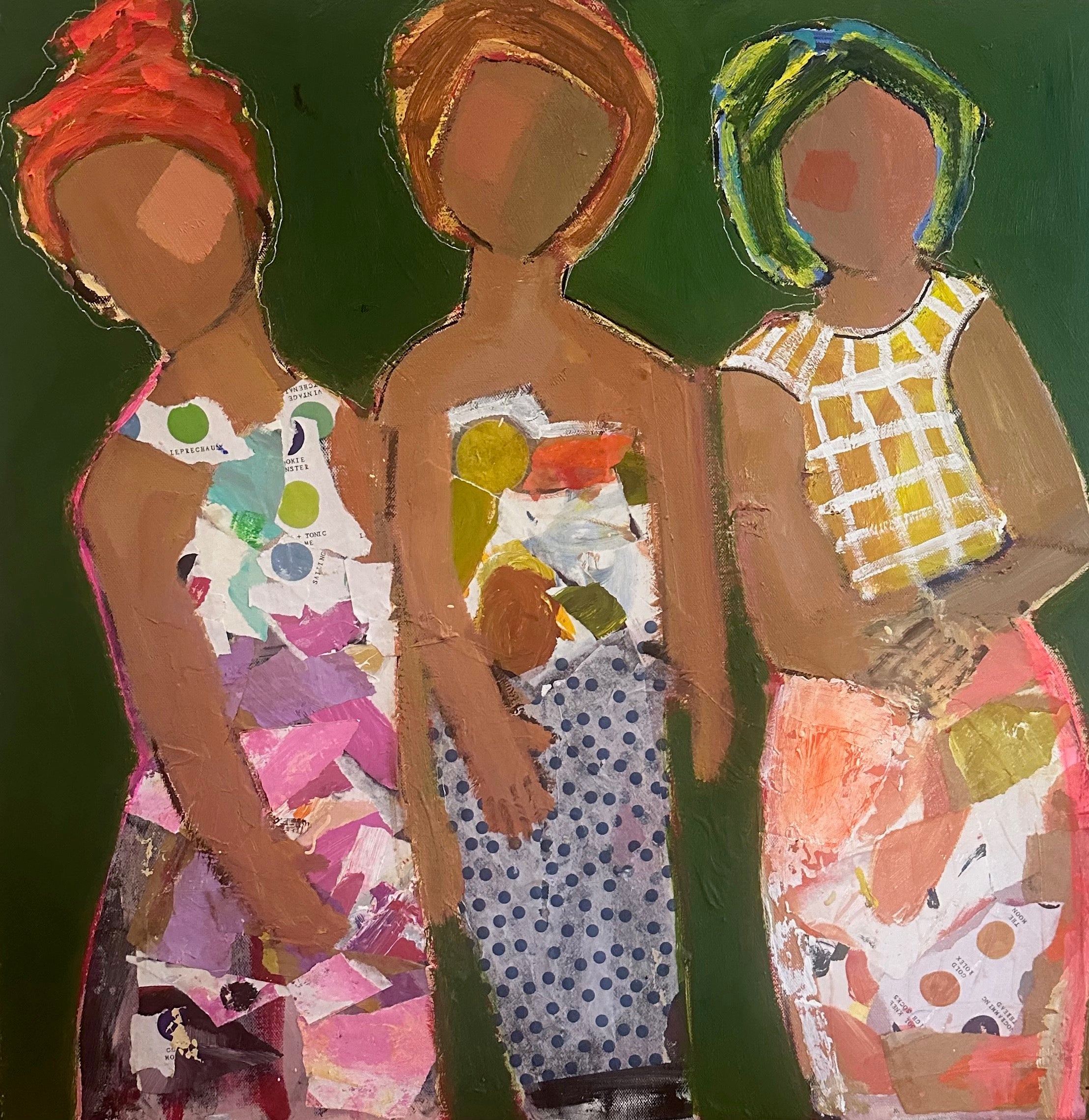 Page Morris picked up a paintbrush in third grade and never looked back. Largely self-taught, her client list reaches as far as Canada and includes syndicated columnist Kathleen Parker. Galleries representing her work include: Verve and Over the Mantle in Columbia, SC; Grand Bohemian Gallery in Charleston, SC and One Kings Lane. "My subject matter is women who are feminine, colorful, playful, strong, and beautiful. I use paper, pencil, markers, oil sticks, and paint to achieve a multi-dimensional look. I love texture because the viewers see even more when they stop to take a second look. I adhere to a rigid schedule of painting each day. Creativity only happens if I'm hard at work in my studio. I love what I do and hope my viewers can see that. It's a joyous experience to pick up a paintbrush. It's what I do and what I am."