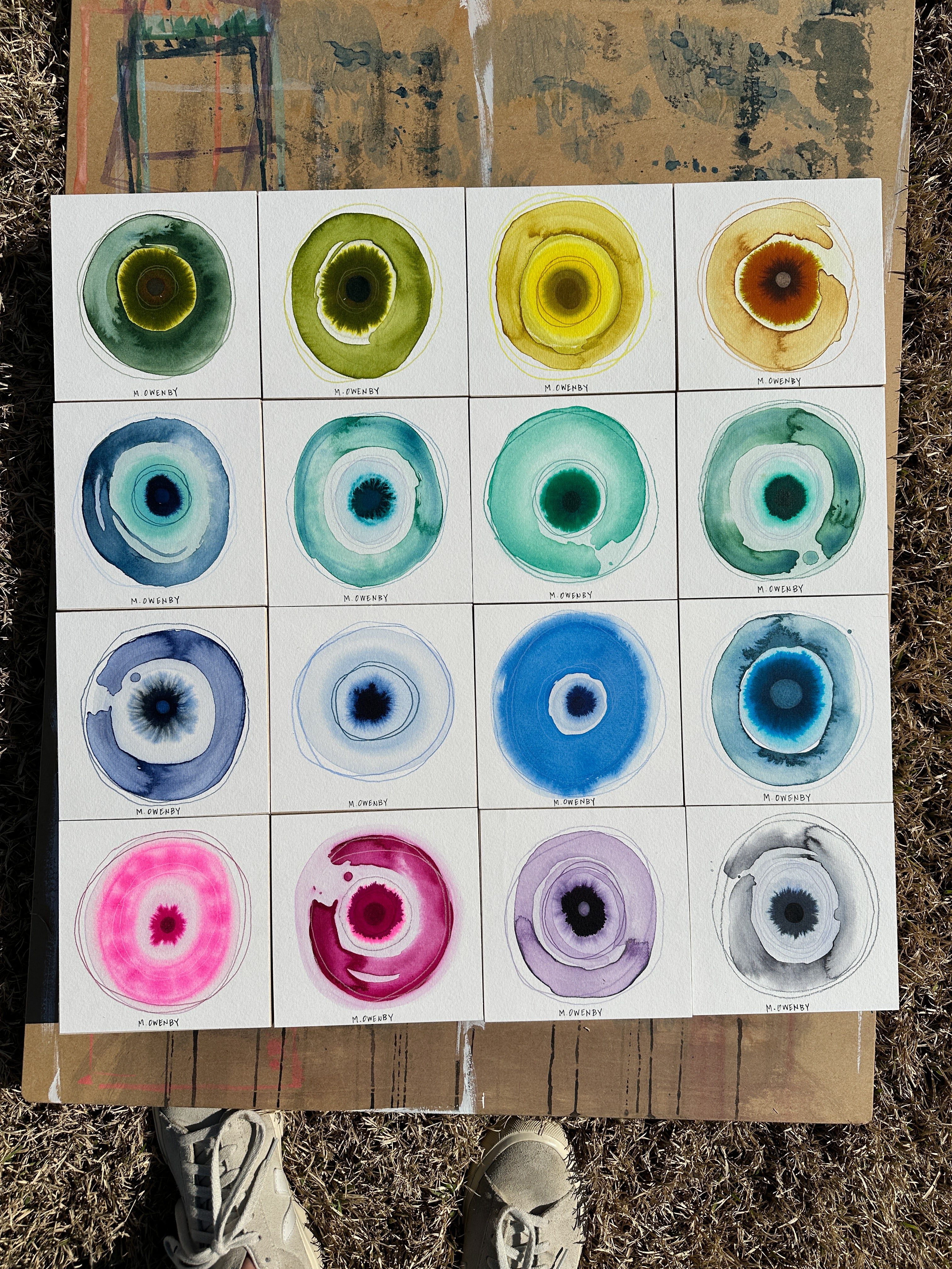 Michelle was born in Asheville, NC with a deeply rooted “maker” heritage. She developed a love of art, nature, travel + spirituality which greatly inform the foundation of her work. Influenced by her mother + grandmother, she has been using her hands + imagination since she was a child to create artful objects. Her work often reflects colors + patterns found in nature where she spent much of her childhood with her dad, who was an avid-outdoorsman. She enjoys a clean, abstract aesthetic using mainly water-based mediums, paper + natural fibers. In almost all of her work you will see her intrigue with the opposing forces of dualism. Her works are spiritual + reflective outpourings that she tries to nurture daily. Faith + family are her highest priorities so, she works from her home studio in Sullivan’s Island, SC where both peaceful + joyful inspiration are found. She resides there with her beloved husband, 2 loving teenage boys + their lazy yellow lab. Her work has been seen throughout the Southeast + licensed in worldwide markets.