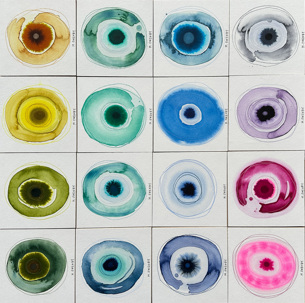 Michelle was born in Asheville, NC with a deeply rooted “maker” heritage. She developed a love of art, nature, travel + spirituality which greatly inform the foundation of her work. Influenced by her mother + grandmother, she has been using her hands + imagination since she was a child to create artful objects. Her work often reflects colors + patterns found in nature where she spent much of her childhood with her dad, who was an avid-outdoorsman. She enjoys a clean, abstract aesthetic using mainly water-based mediums, paper + natural fibers. In almost all of her work you will see her intrigue with the opposing forces of dualism. Her works are spiritual + reflective outpourings that she tries to nurture daily. Faith + family are her highest priorities so, she works from her home studio in Sullivan’s Island, SC where both peaceful + joyful inspiration are found. She resides there with her beloved husband, 2 loving teenage boys + their lazy yellow lab. Her work has been seen throughout the Southeast + licensed in worldwide markets.