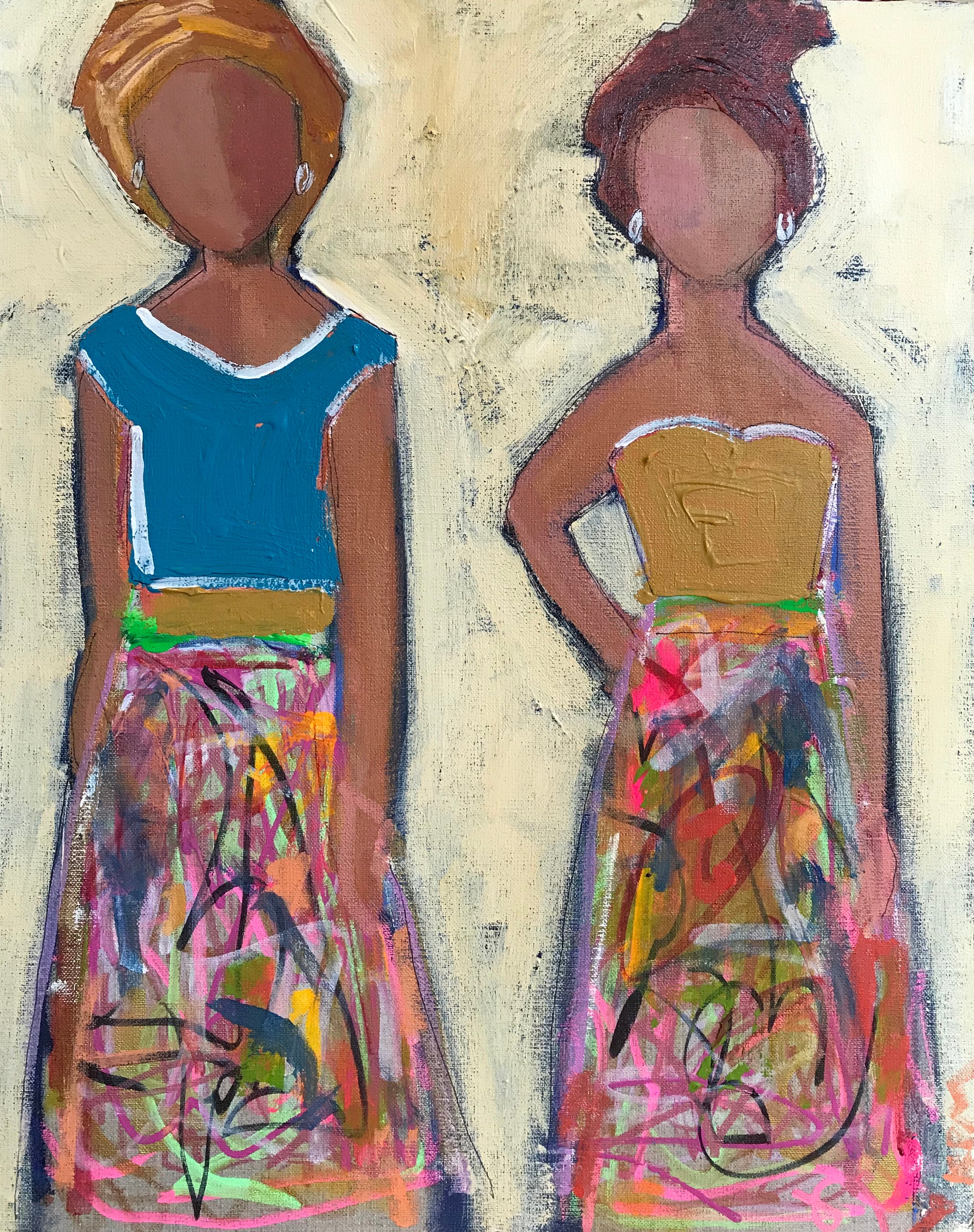 Page Morris picked up a paintbrush in third grade and never looked back. Largely self-taught, her client list reaches as far as Canada and includes syndicated columnist Kathleen Parker. Galleries representing her work include: Verve and Over the Mantle in Columbia, SC; Grand Bohemian Gallery in Charleston, SC and One Kings Lane. "My subject matter is women who are feminine, colorful, playful, strong, and beautiful. I use paper, pencil, markers, oil sticks, and paint to achieve a multi-dimensional look. I love texture because the viewers see even more when they stop to take a second look. I adhere to a rigid schedule of painting each day. Creativity only happens if I'm hard at work in my studio. I love what I do and hope my viewers can see that. It's a joyous experience to pick up a paintbrush. It's what I do and what I am."