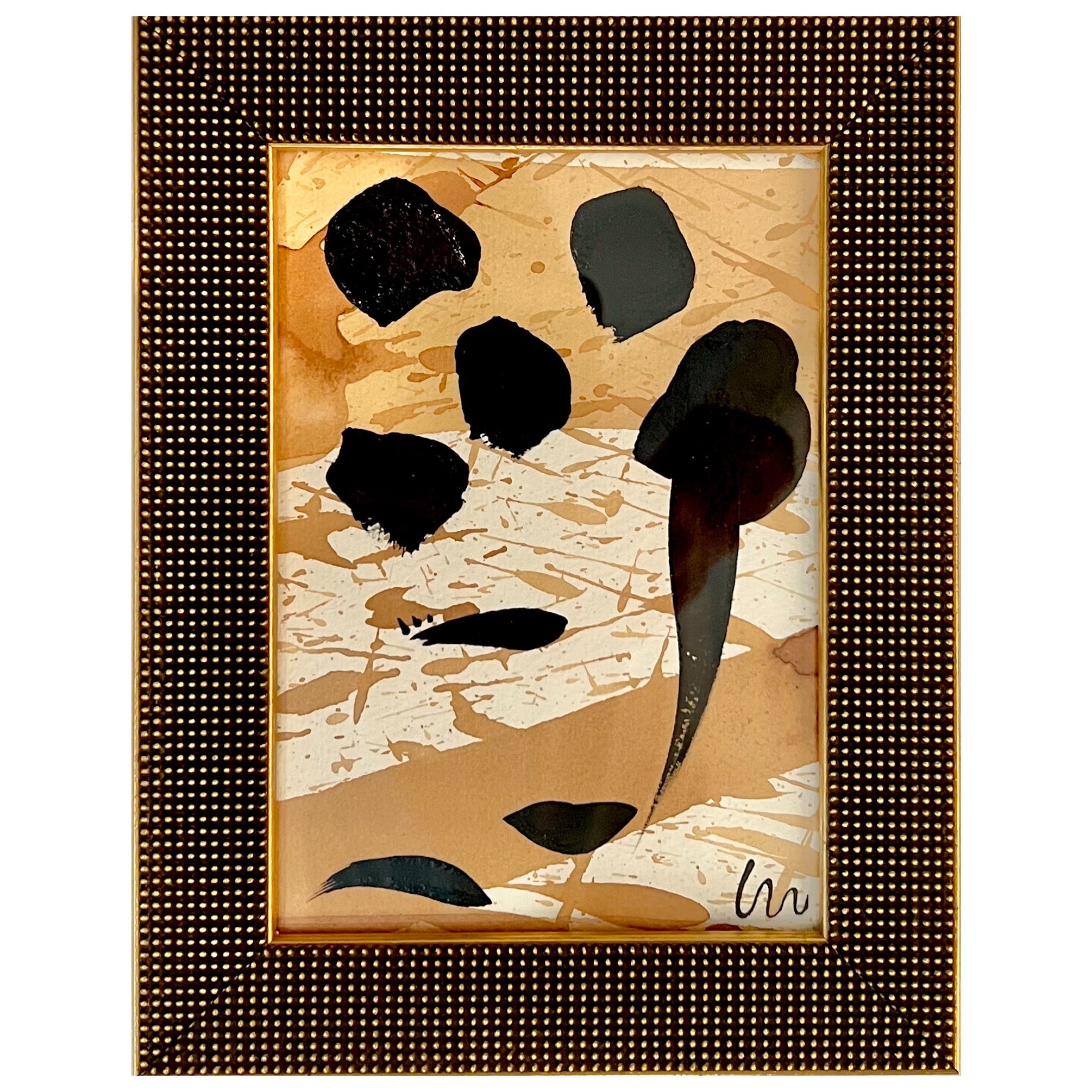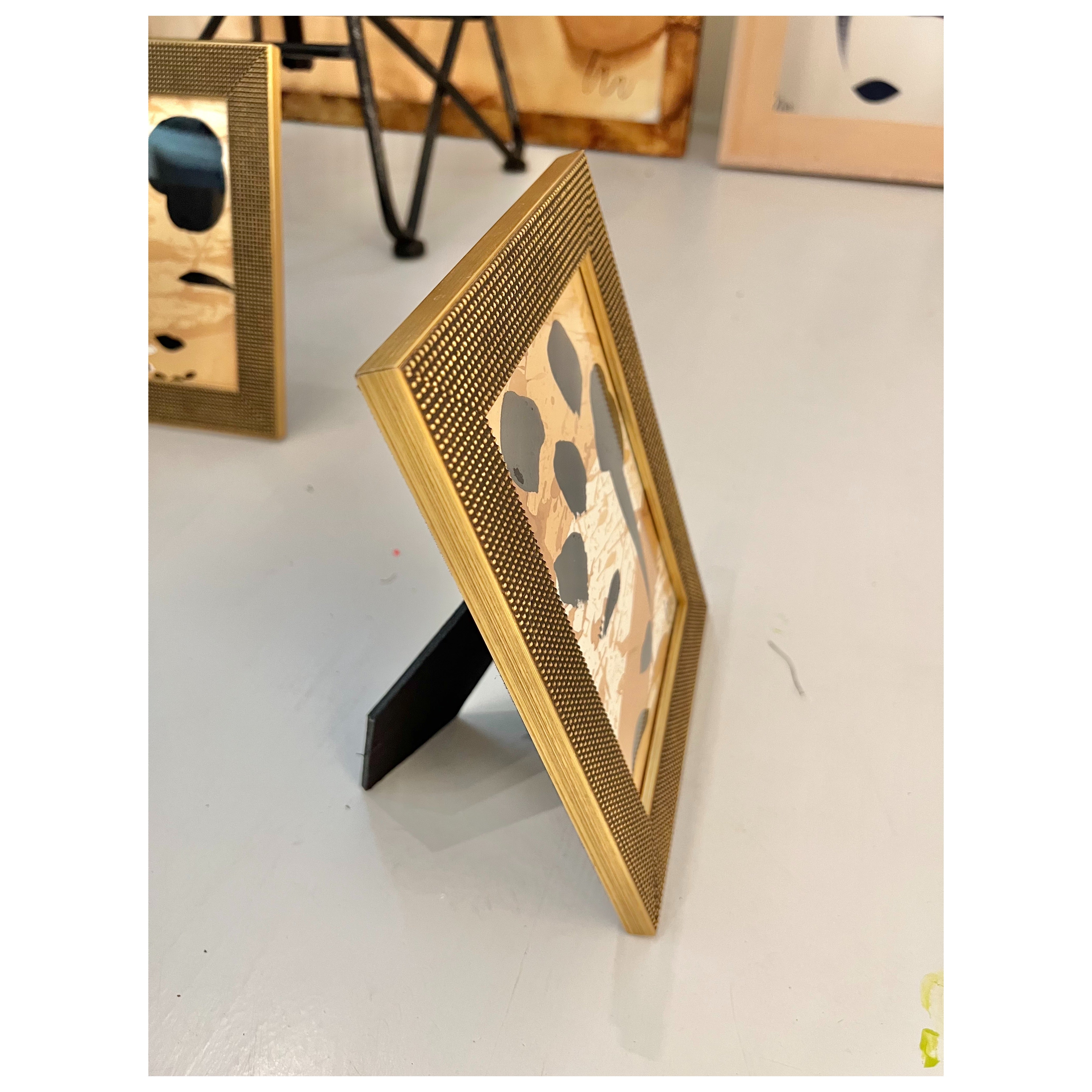 acrylic on tea stained paper, in beaded gold table-top frame