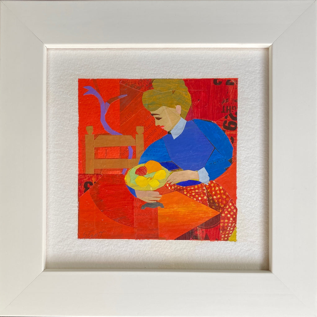 handpainted paper collage, in white frame