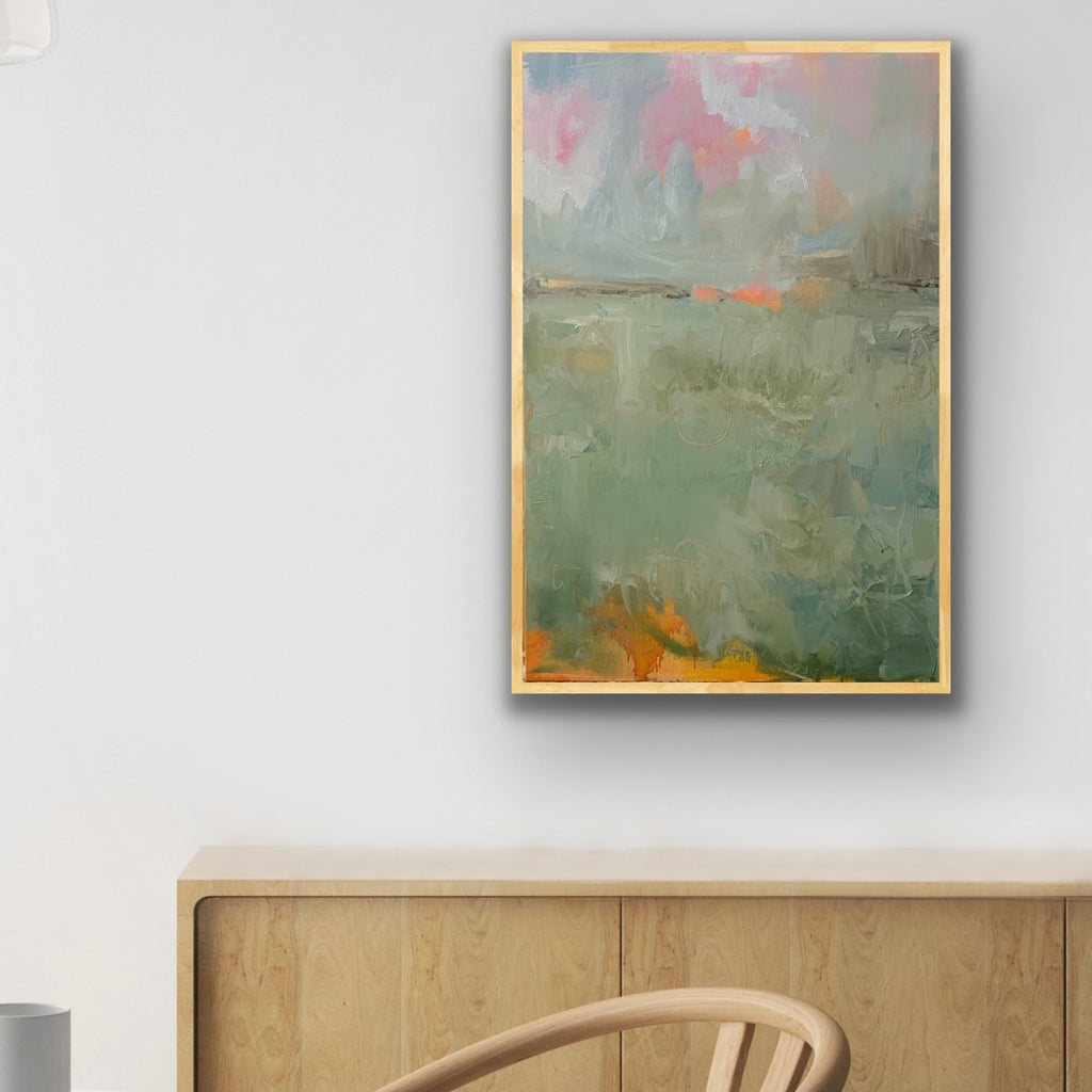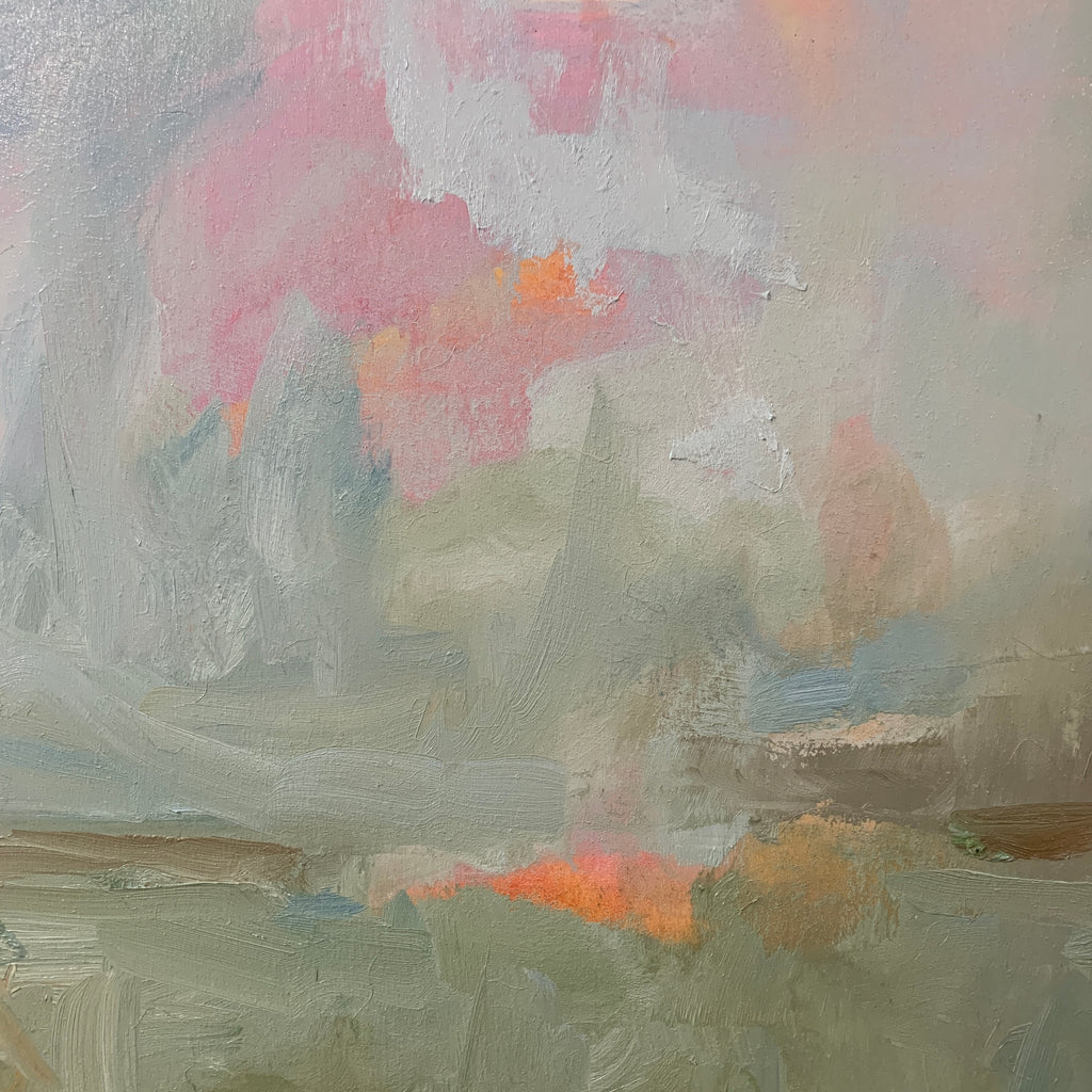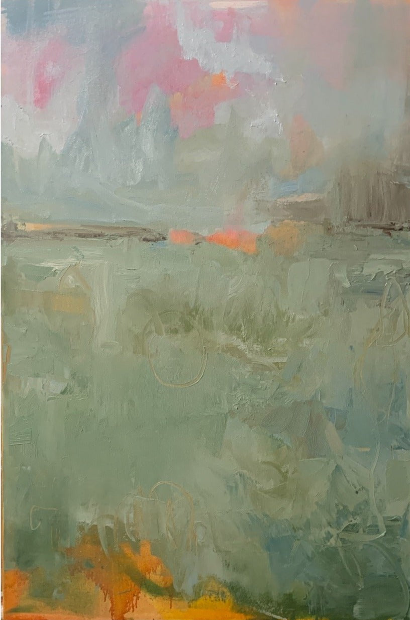 I find ultimate freedom in abstract expressionism and as such, I’m in search of the best way to convey who I am at the moment of creating. It is not to say it is a free-for-all; there is still structure within. I implement the same principles that realist painters employ with the absence of representation: composition, hierarchy, variety, juxtaposition are vital to a successful painting. But I do not limit myself to one medium or the other. I work in oil, acrylics and gouache and depending on what I’m exploring at the time I will choose one or more to express it. I also explore through a combination of paint and collage. It is through all of these various methods and mediums that I am able to share my fullest expression of self and my authenticity. My paintings ultimately are self portraits that are created from both past experiences and also future hopes and dreams. It is my goal to invoke a feeling for the viewer. When it does I have succeede