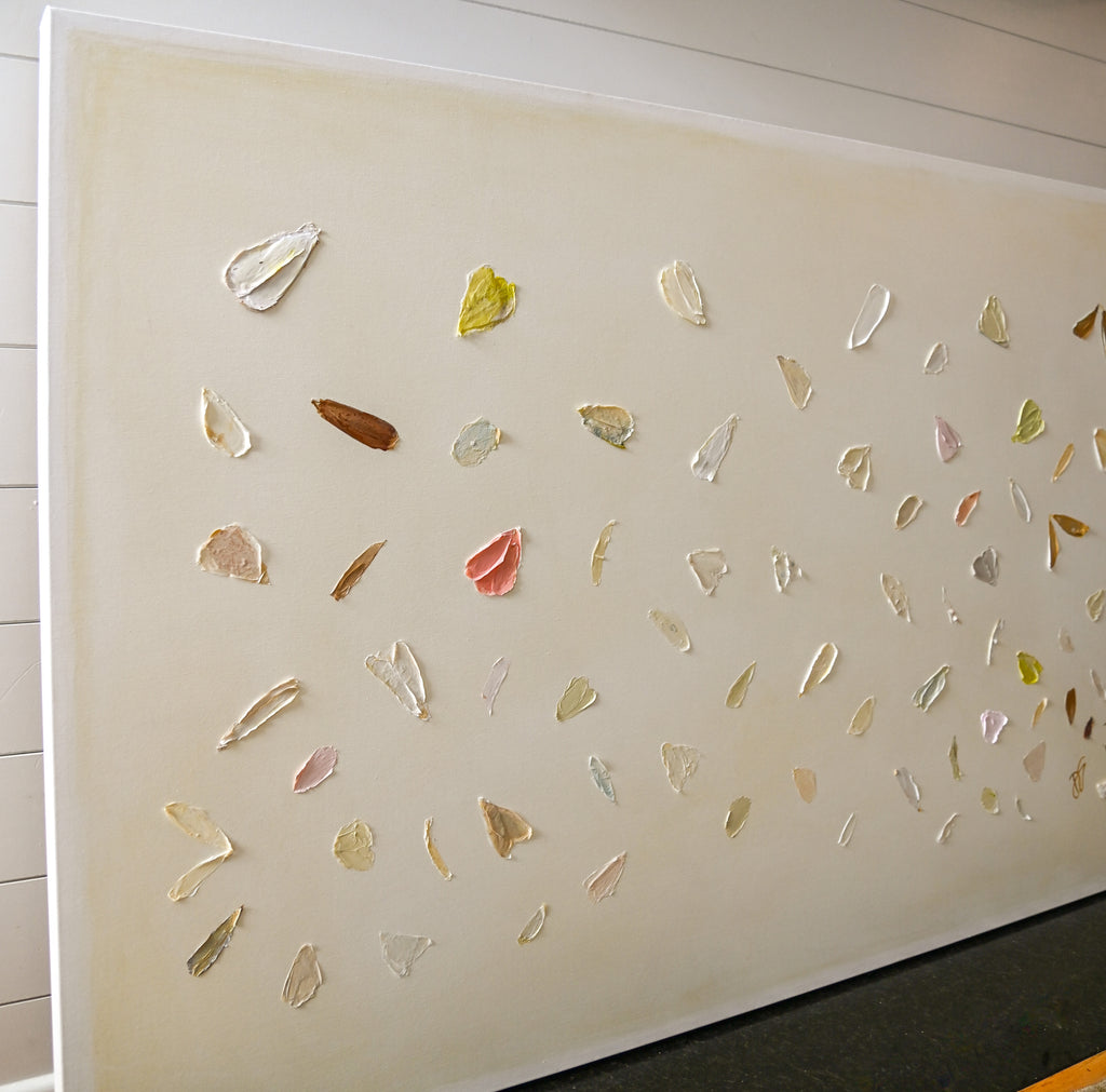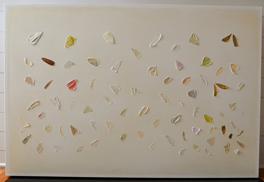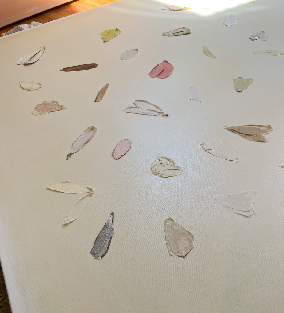 If Diana had a personal motto it would be “everything can be a treasure hunt if you try hard enough.” Growing up in Baton Rouge, Louisiana, Diana was fully trained in the art of the hunt by her mother who would drop all plans at the glimmer of an “Estate Sale Today” sign. Fortunately, this past time led to the ultimate find of a library of art and painting books which sent her in to a rabbit hole of learning about theories, lines, composition, and color that she hasn’t looked back from since. After years of self-study and practice, Diana launched her first collection to the public in fall of 2020. Her first series entitled “The Butterfly Collection” is built upon layers of color, glazers and washes carefully balanced to find the calm in the chaos. Diana names each piece after her favorite inspirational influences from authors to beaches to everyday people in her life that constantly bring her back to awe and wonder. Diana resides in Mount Pleasant, South Carolina with her husband Gabe, and her three boys Dixon, Charles, and Henry. If you are in the area and see a girl with paint chips on her hand digging for shells in the beach or through a stack of books in front of the library, please say hello!