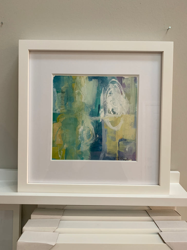 I find ultimate freedom in abstract expressionism and as such, I’m in search of the best way to convey who I am at the moment of creating. It is not to say it is a free-for-all; there is still structure within. I implement the same principles that realist painters employ with the absence of representation: composition, hierarchy, variety, juxtaposition are vital to a successful painting. But I do not limit myself to one medium or the other. I work in oil, acrylics and gouache and depending on what I’m exploring at the time I will choose one or more to express it. I also explore through a combination of paint and collage. It is through all of these various methods and mediums that I am able to share my fullest expression of self and my authenticity. My paintings ultimately are self portraits that are created from both past experiences and also future hopes and dreams. It is my goal to invoke a feeling for the viewer. When it does I have succeede