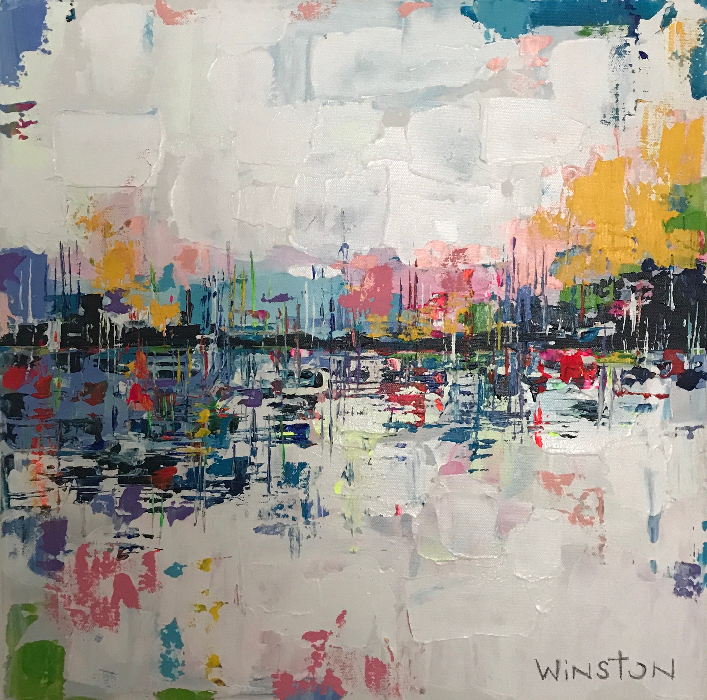 Winston Wiant is originally from Amelia Island, Florida, and full of southern charm. She brings her whimsical and witty delight to each and every painting. Having painted since childhood, she received a Bachelor of Arts degree in Studio Art at Brenau University and has been pursuing her love of art ever since. Her paintings are full of texture, using the palette knife and free brushstrokes to layer the paint, creating one energetic piece after another. She lives in Athens, GA, with her husband and two daughters and paints in her home studio. “Art to me is a form of self-expression. The way I feel that day reflects in my work. My love of bold color and texture is both distinctive and captivating.”