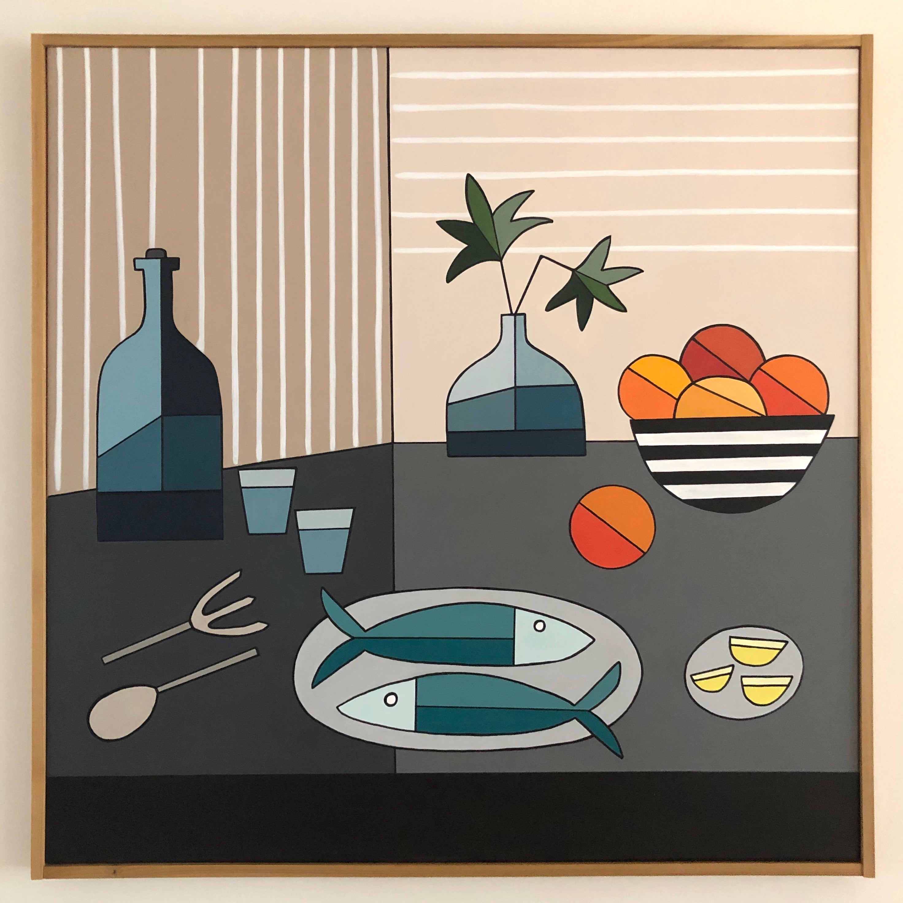 mixed media on canvas with handmade wooden frame
