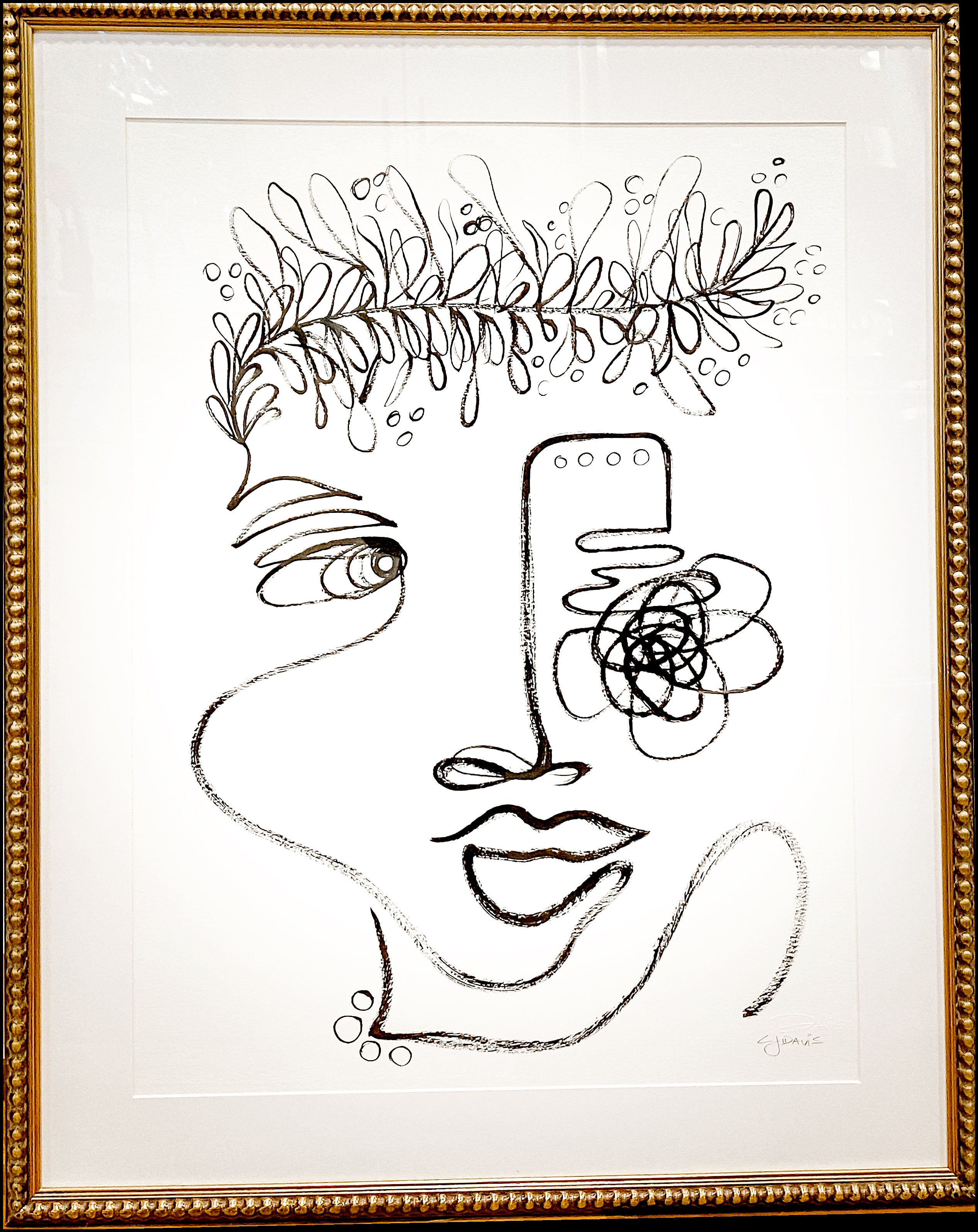 ink on paper, matted and framed