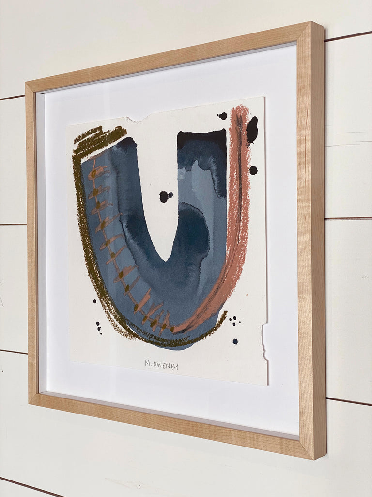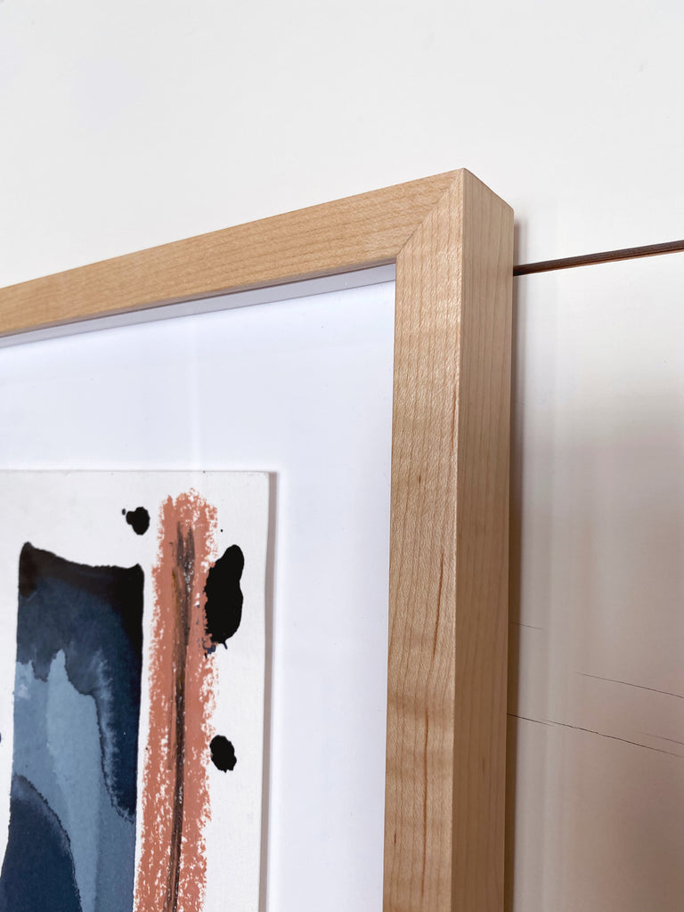 mixed media on paper, in maple floater frame