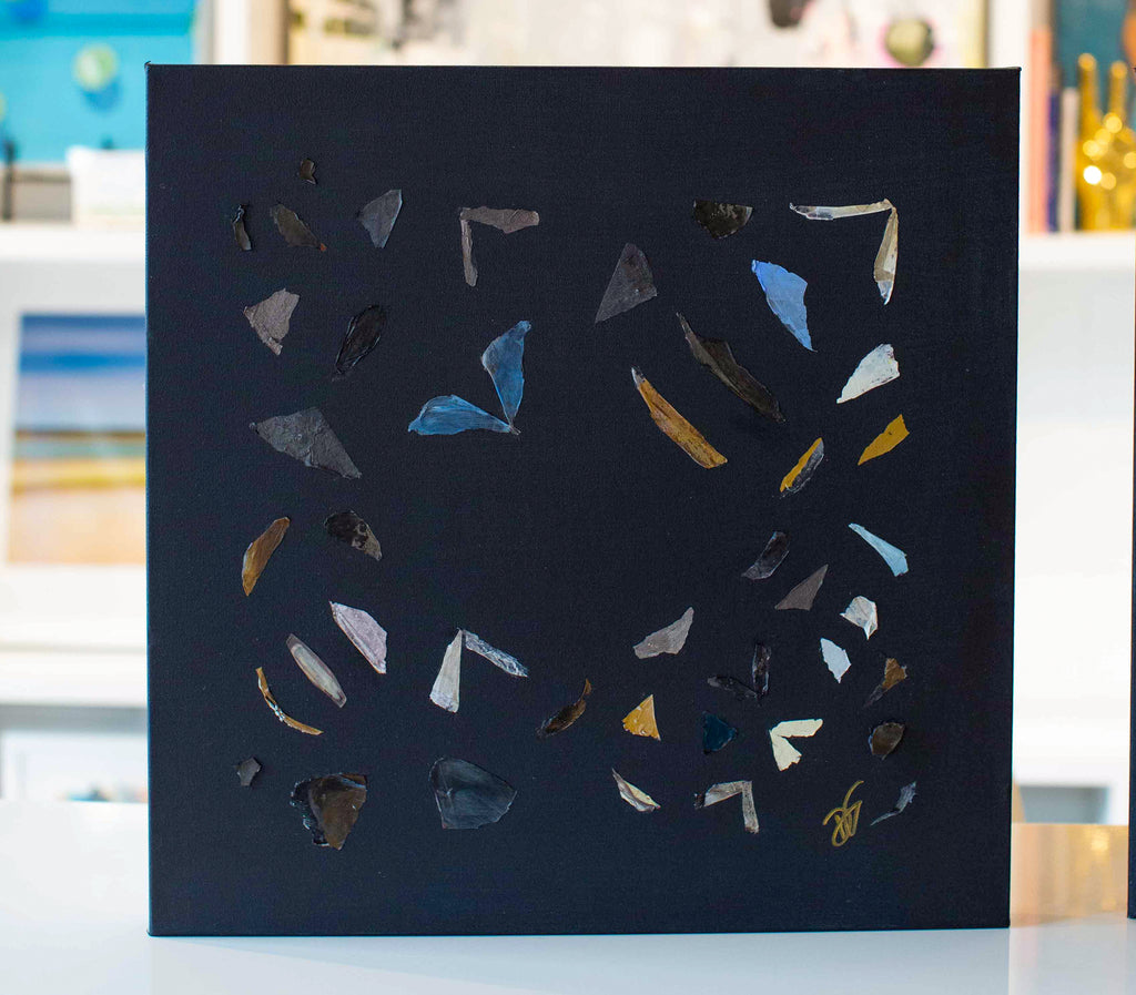If Diana had a personal motto it would be “everything can be a treasure hunt if you try hard enough.” Growing up in Baton Rouge, Louisiana, Diana was fully trained in the art of the hunt by her mother who would drop all plans at the glimmer of an “Estate Sale Today” sign. Fortunately, this past time led to the ultimate find of a library of art and painting books which sent her in to a rabbit hole of learning about theories, lines, composition, and color that she hasn’t looked back from since. After years of self-study and practice, Diana launched her first collection to the public in fall of 2020. Her first series entitled “The Butterfly Collection” is built upon layers of color, glazers and washes carefully balanced to find the calm in the chaos. Diana names each piece after her favorite inspirational influences from authors to beaches to everyday people in her life that constantly bring her back to awe and wonder. Diana resides in Mount Pleasant, South Carolina with her husband Gabe, and her three boys Dixon, Charles, and Henry. If you are in the area and see a girl with paint chips on her hand digging for shells in the beach or through a stack of books in front of the library, please say hello!